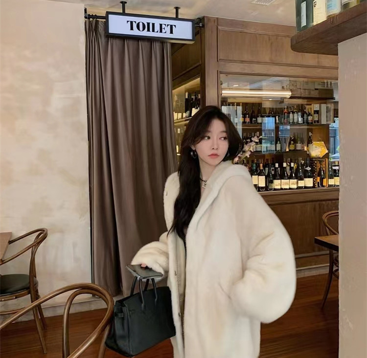 皮草大衣女连帽环保毛毛水貂中长款人造毛富贵2023年新款秋冬季
