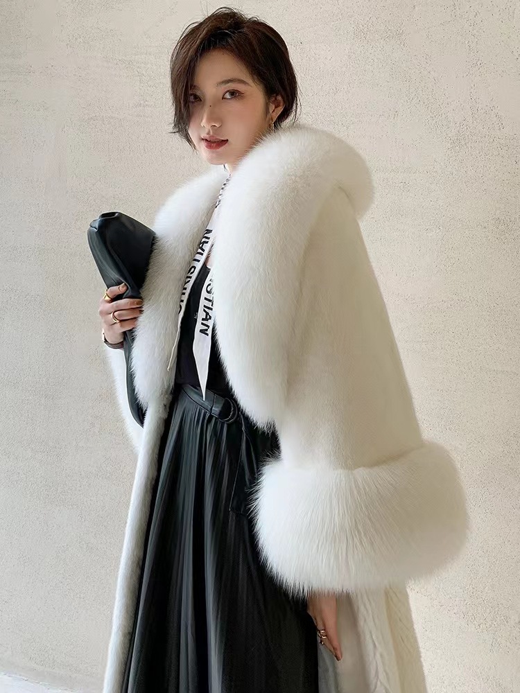 海宁水貂毛外套女洋气貂皮大衣长款水貂绒大衣狐狸毛领加肥加大