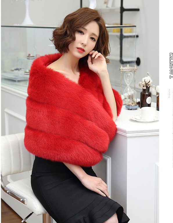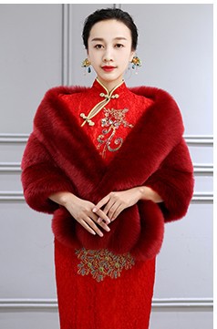 秋冬新娘仿狐狸毛披肩婚纱披风礼服旗袍皮草斗篷外套白女欧美狐狸