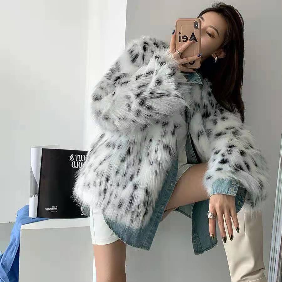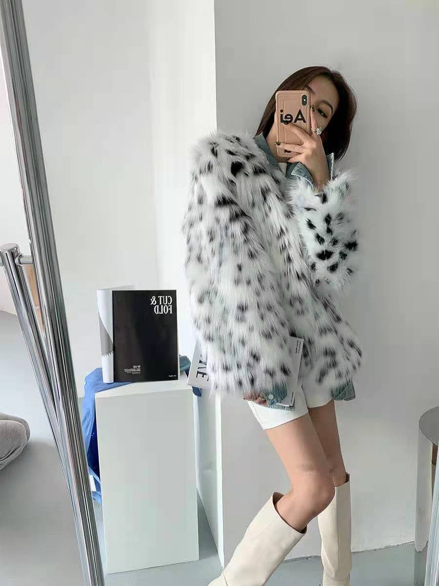 2023新款高级感仿狐狸毛斑点皮草外套女冬季加厚保暖毛毛大衣少女