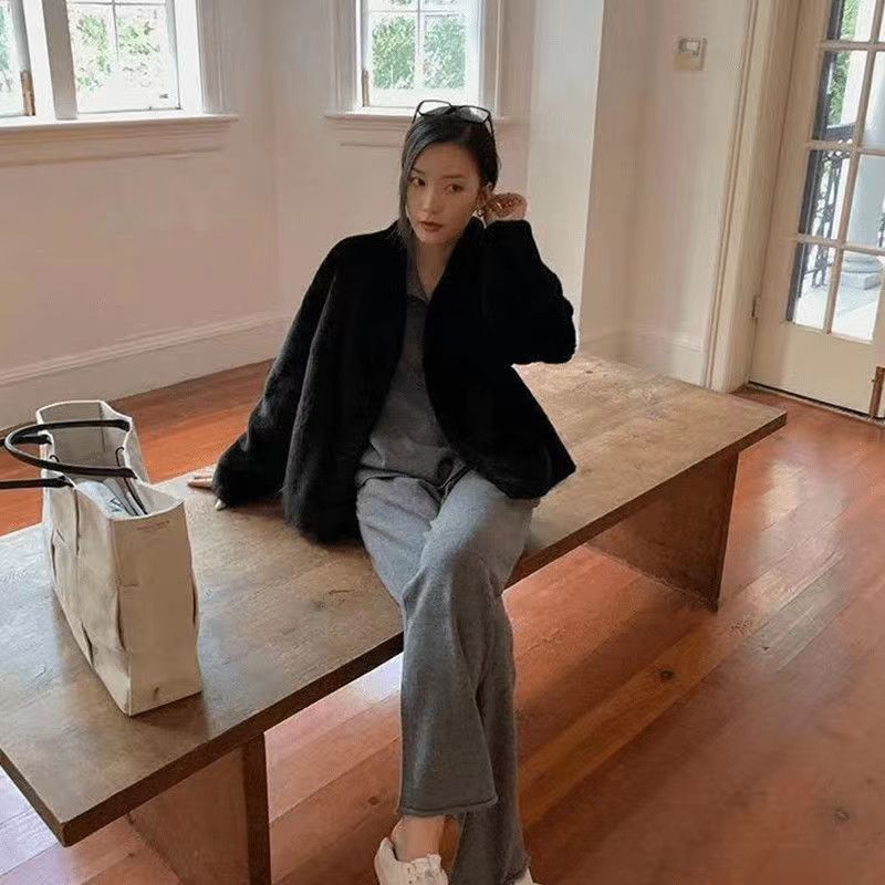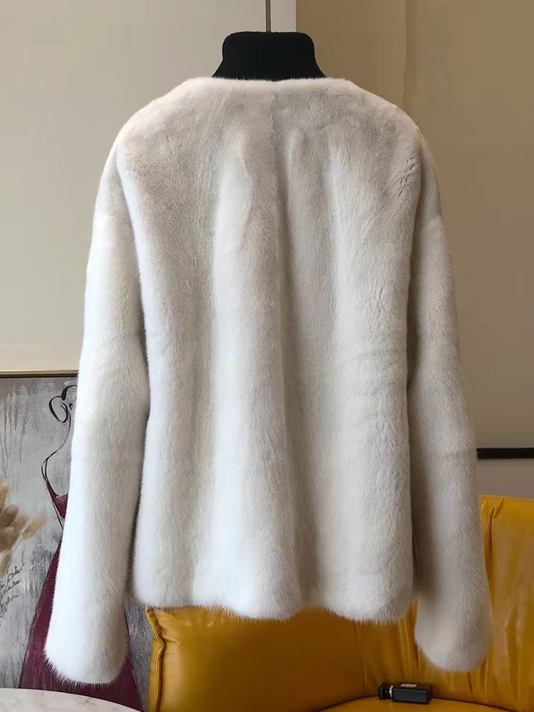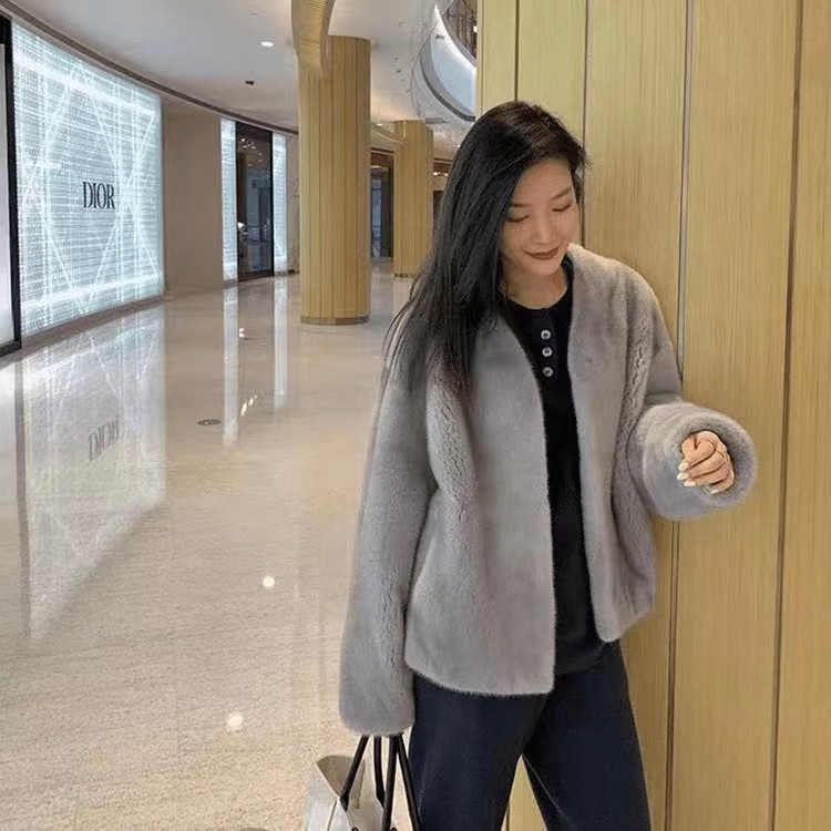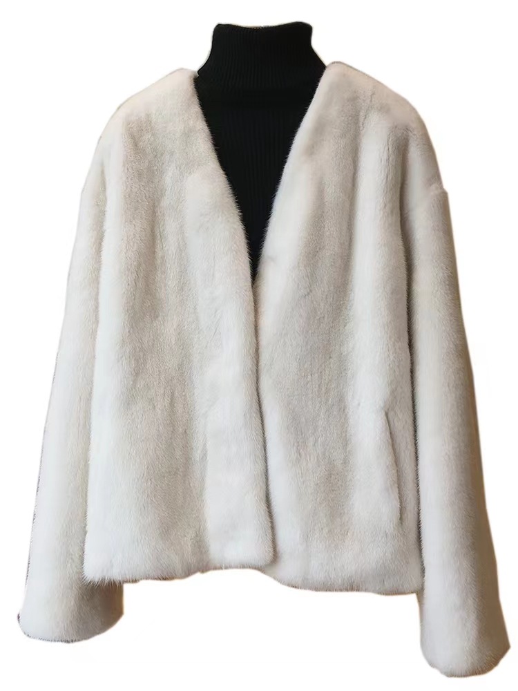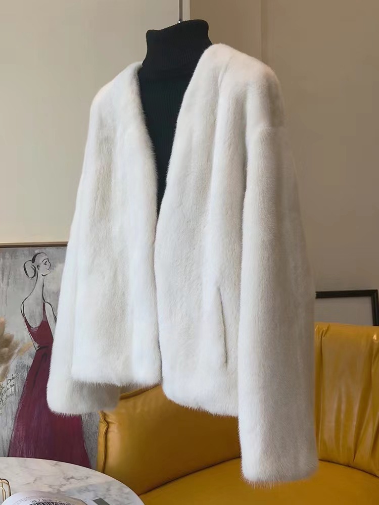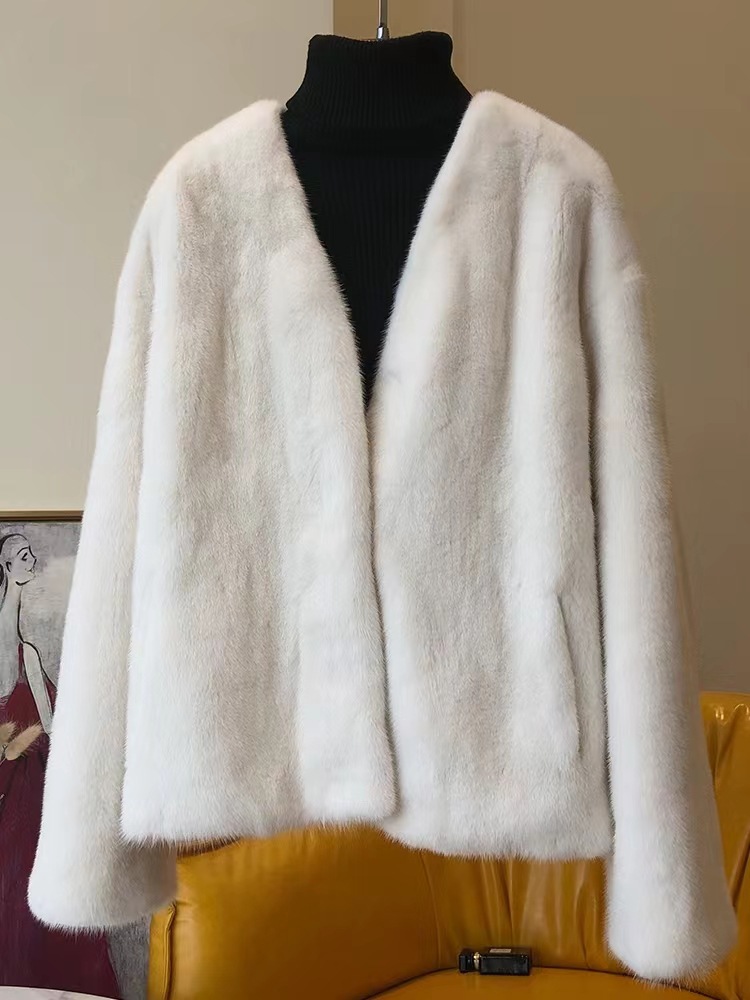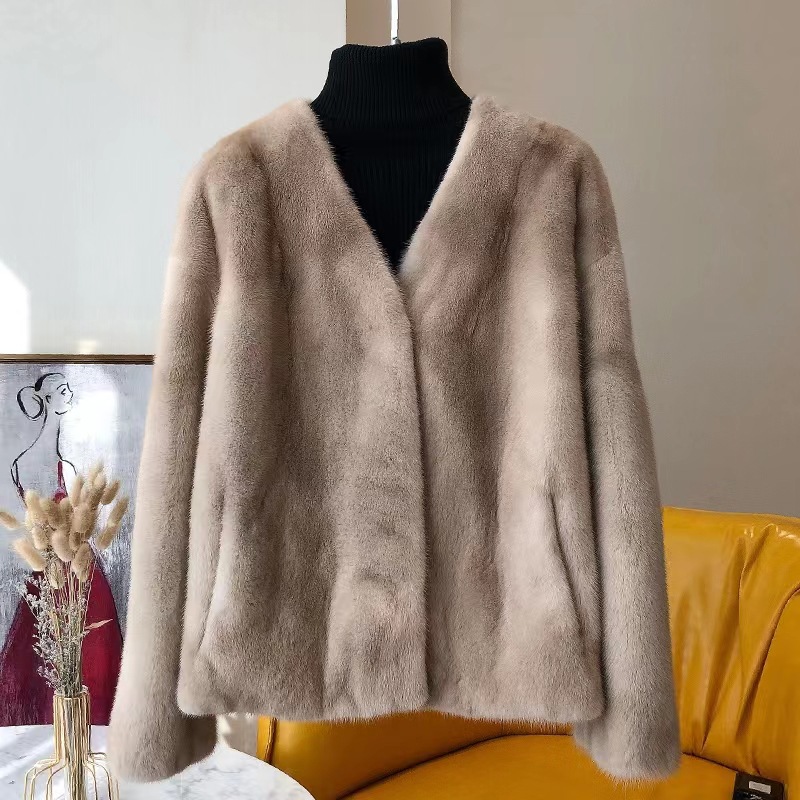 2024秋冬季精仿天鹅绒水貂绒皮草女外套V领百搭时尚貂皮大衣短款