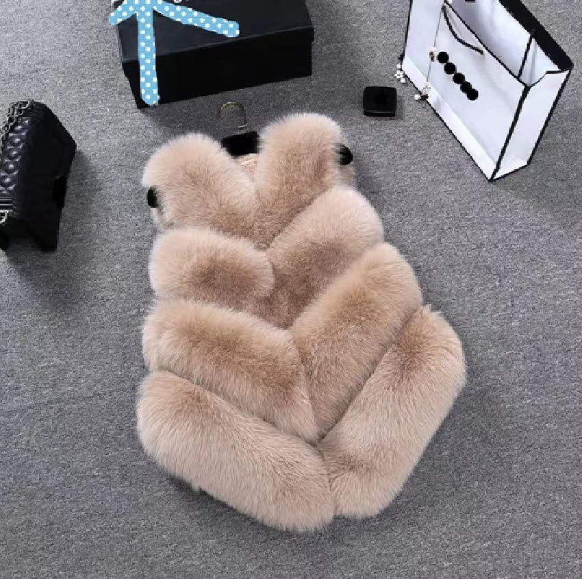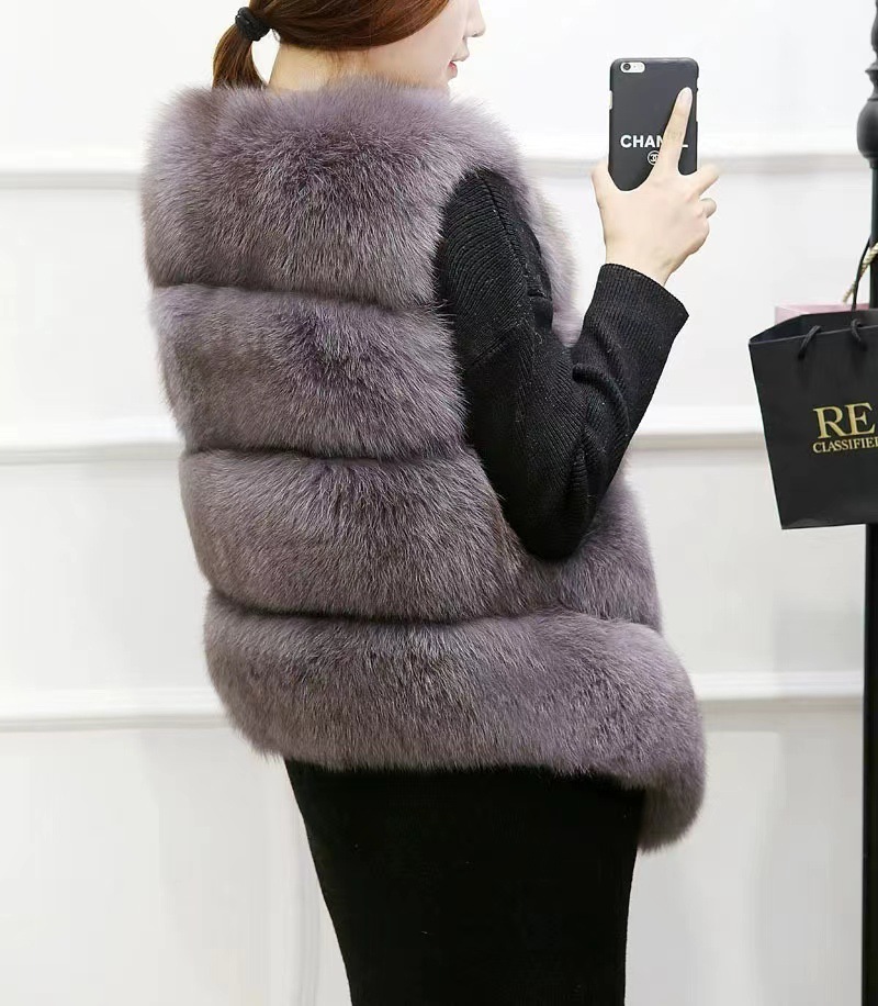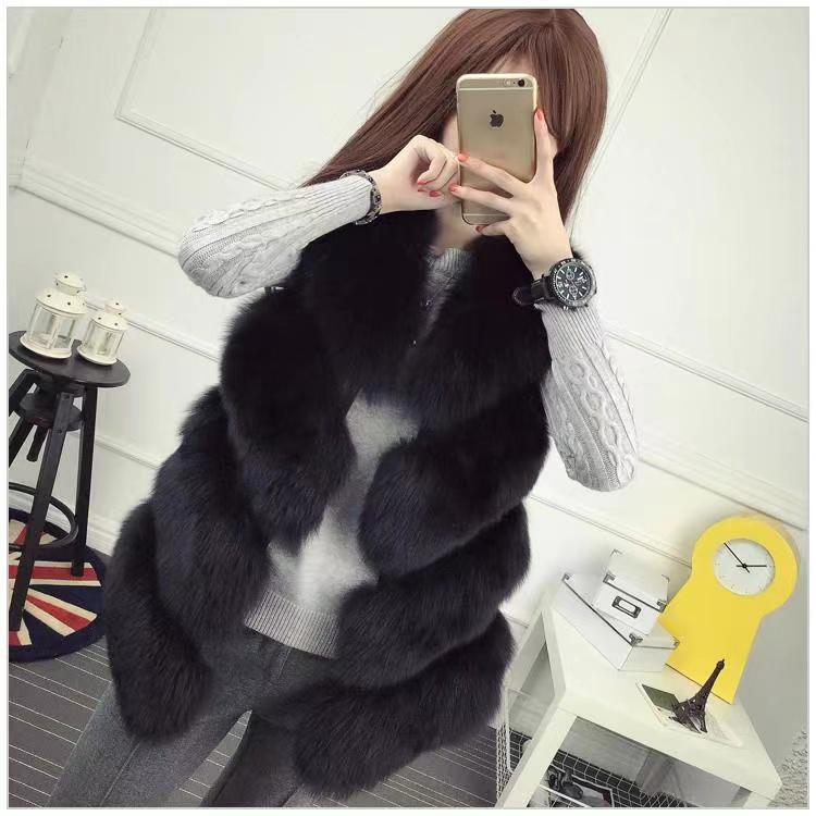 2023新春款仿皮草精仿狐狸毛马甲中长款女士背心拼接修身显瘦外套