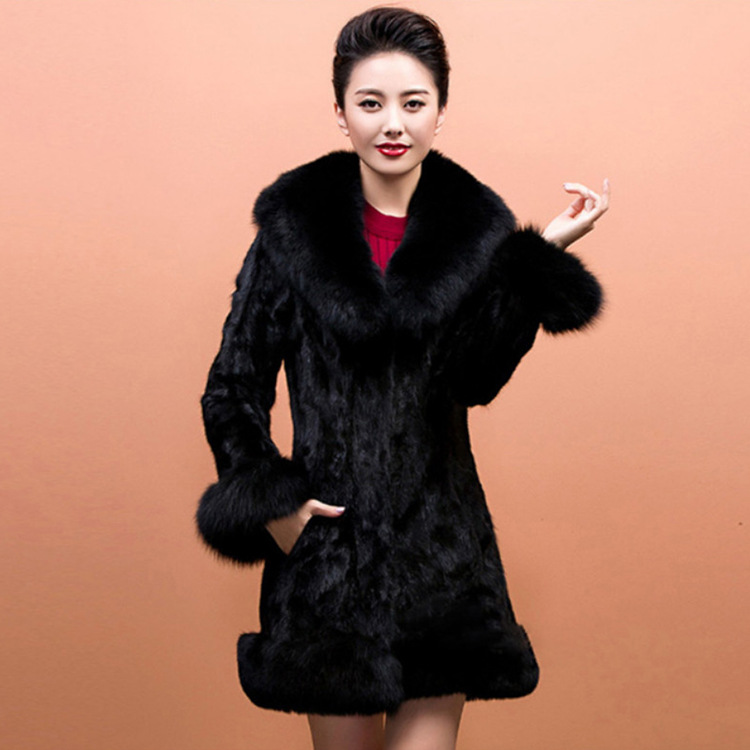 厂家直销仿水貂裘皮大衣 女长款修身皮草外套 狐狸毛显瘦女装