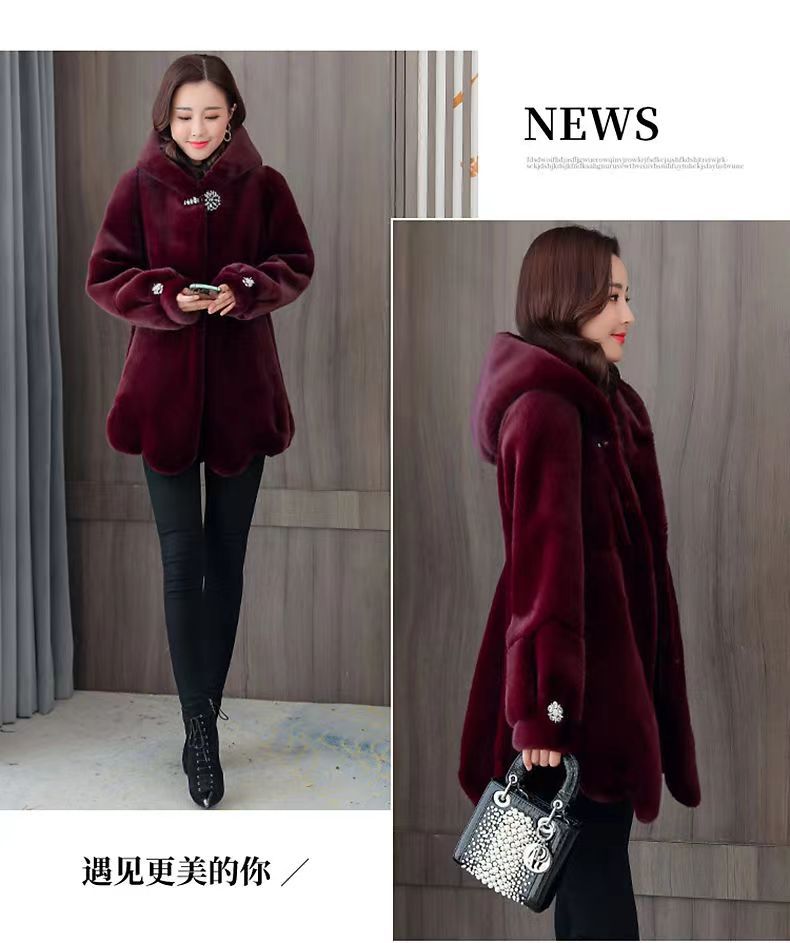 妈妈冬装外套皮草2023新款中老年人女装仿貂毛仿水貂绒大衣短款