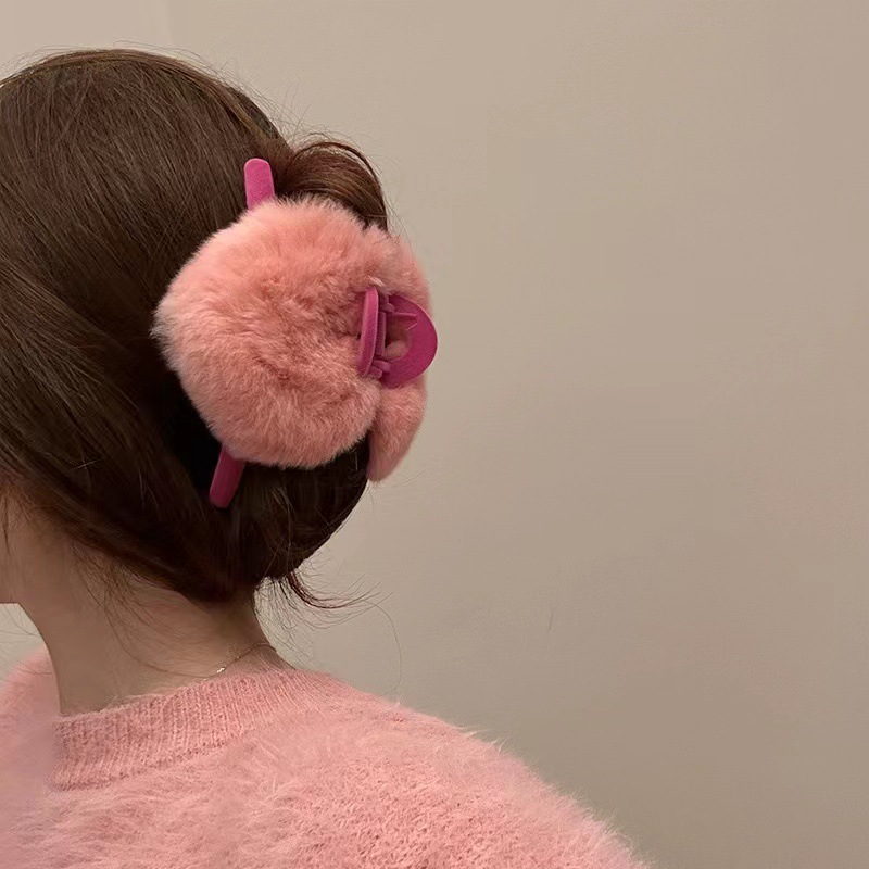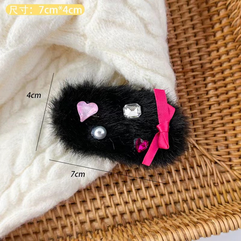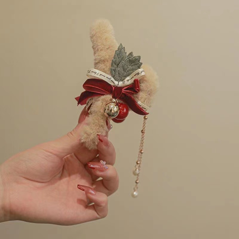 韩版圣诞爱心草莓气质流苏毛绒抓夹可爱少女秋冬后脑勺发饰发夹