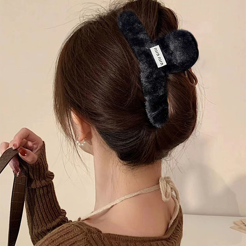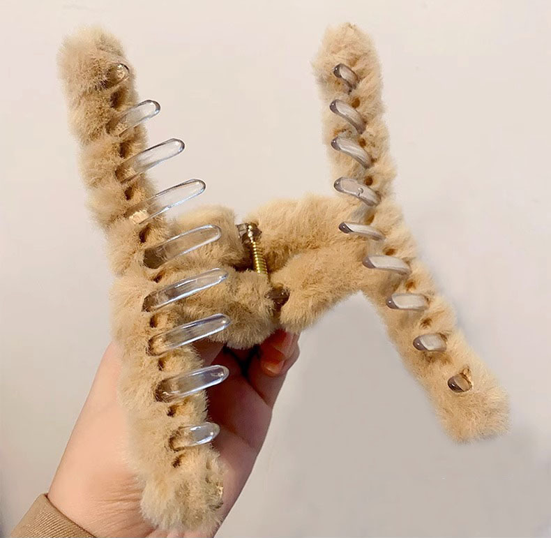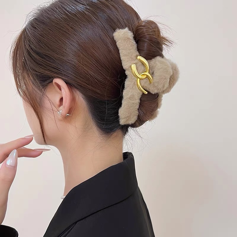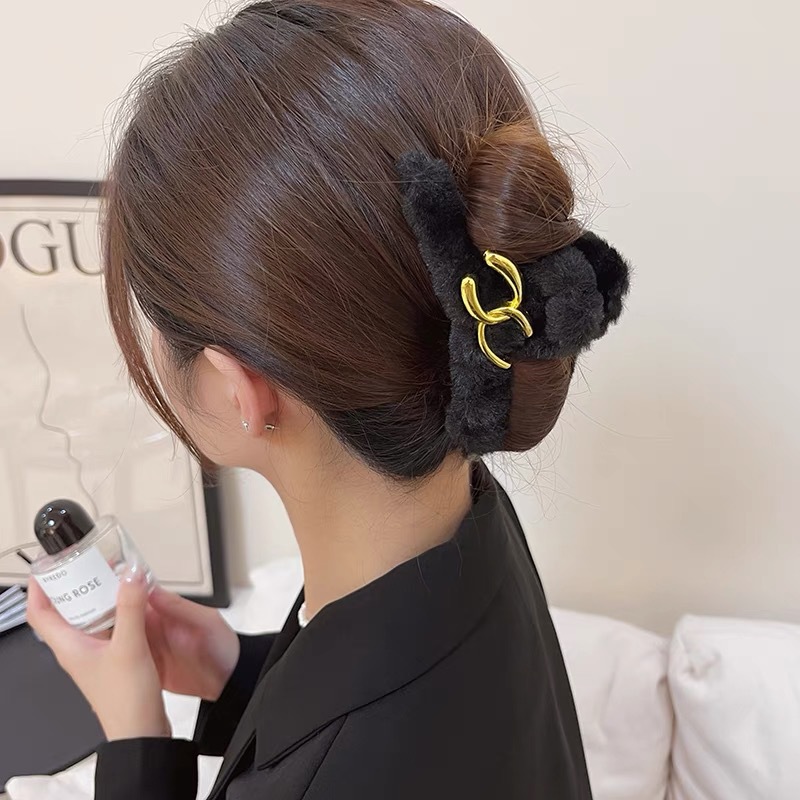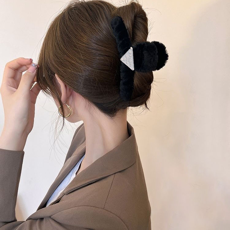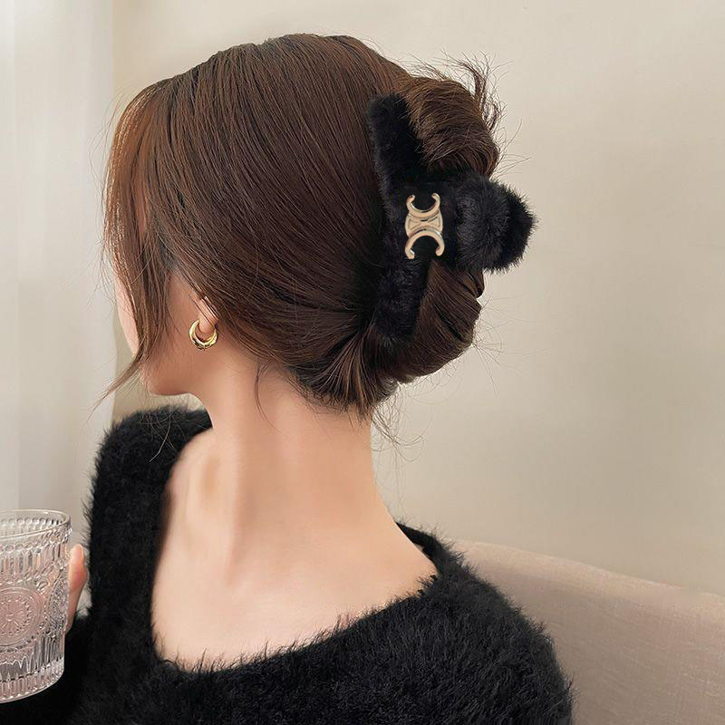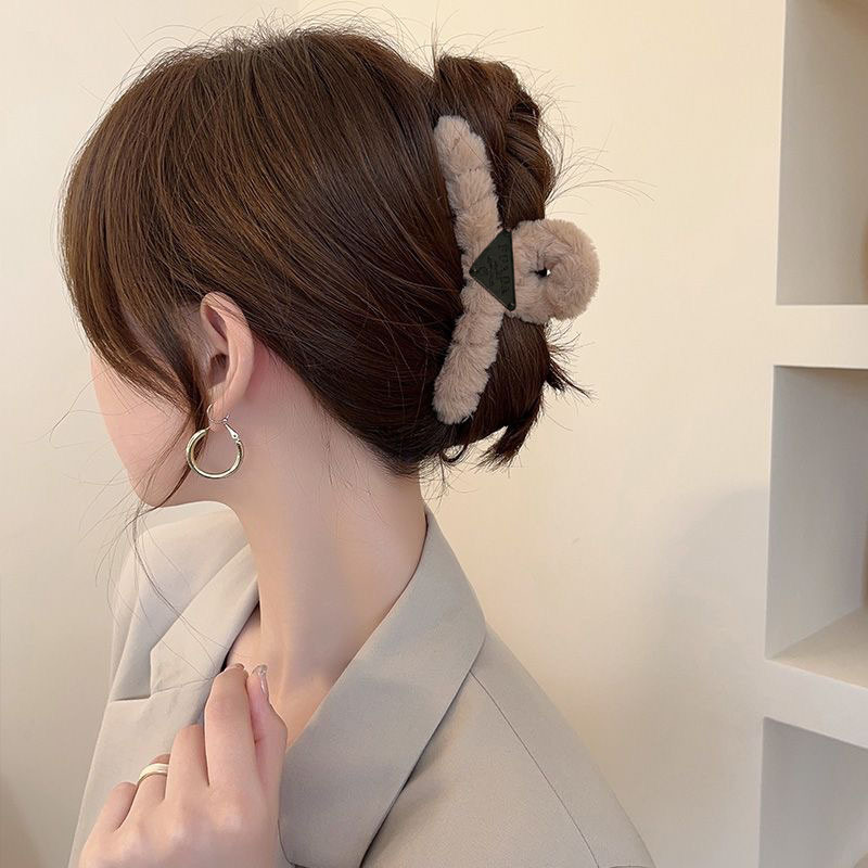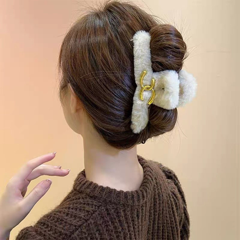 毛绒抓夹大号发夹女后脑勺盘发鲨鱼夹新款高级感发饰百搭夹子头饰