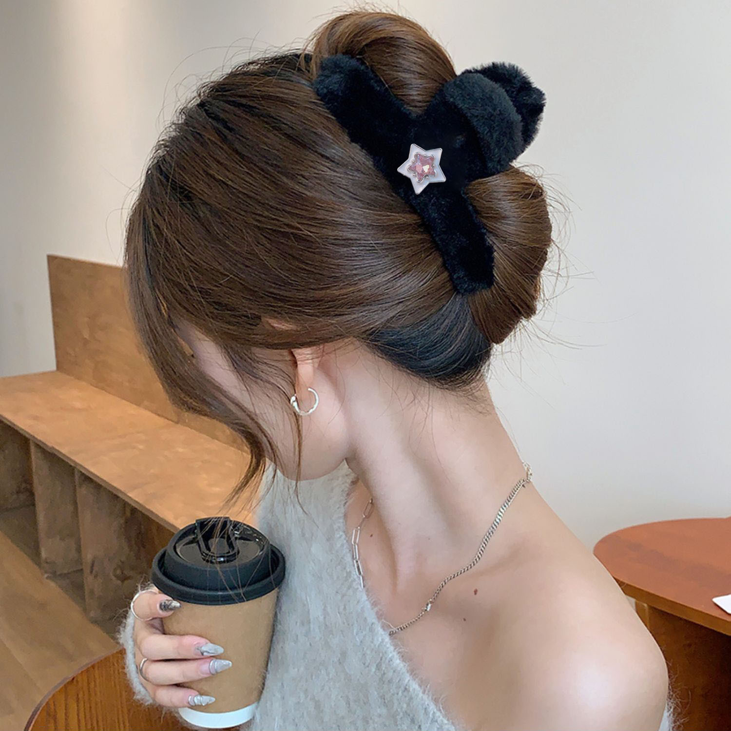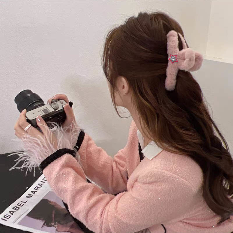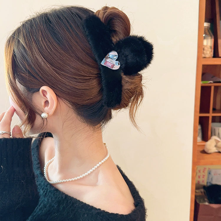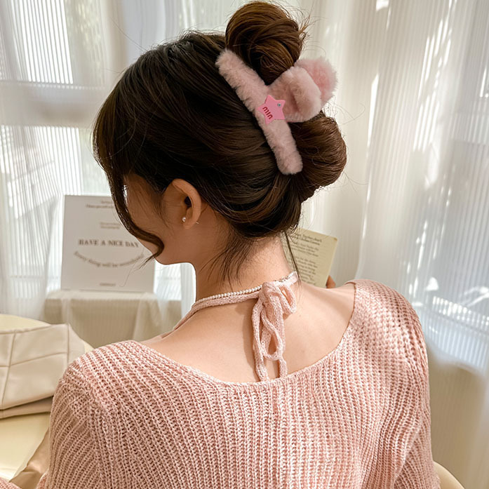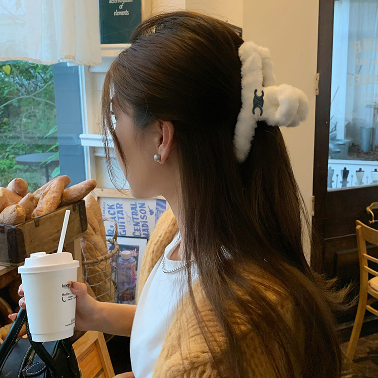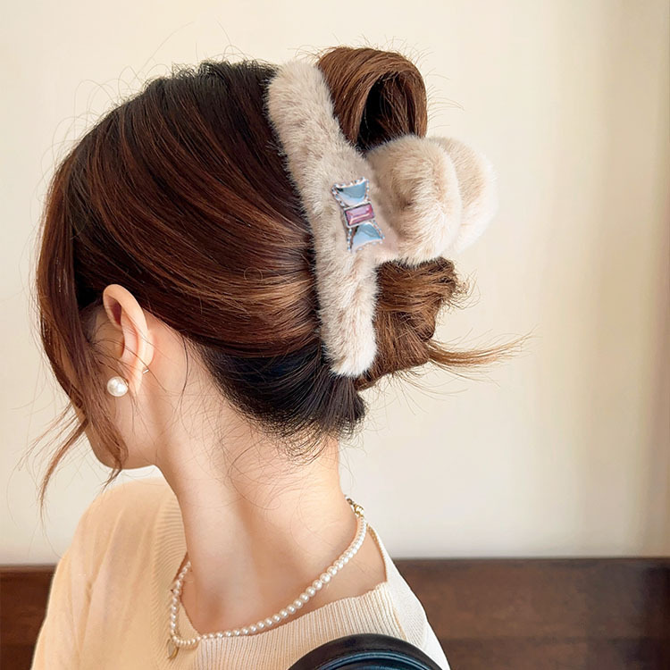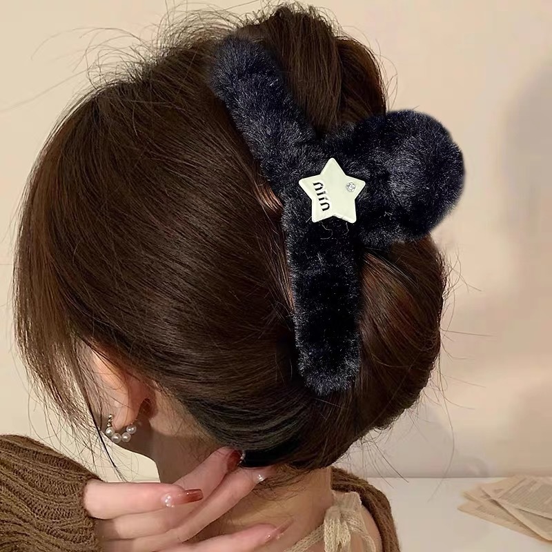 毛绒抓夹大号发夹女后脑勺盘发鲨鱼夹新款高级感发饰百搭夹子头饰