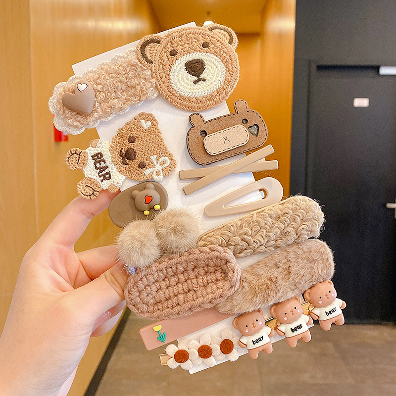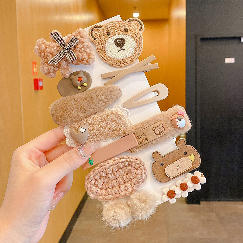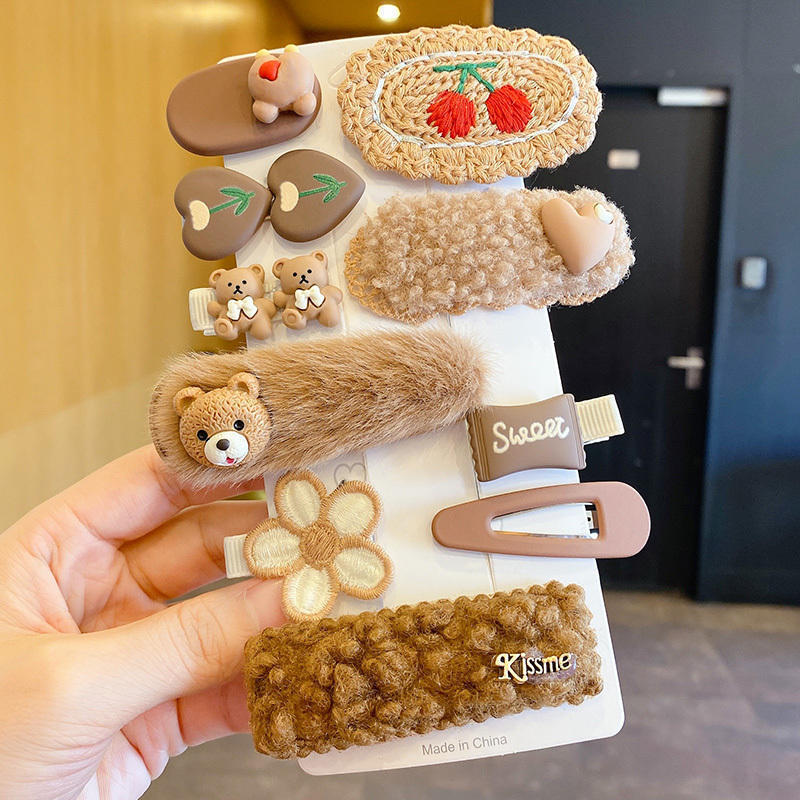 秋冬咖色系发夹侧边刘海夹子女可爱头饰毛绒碎发卡子毛毛发卡批发