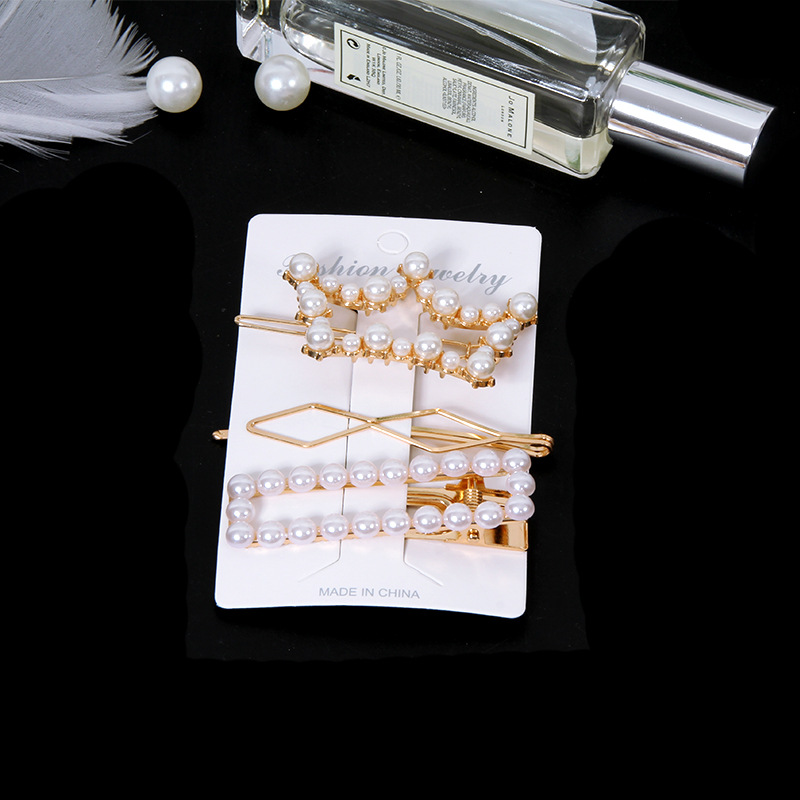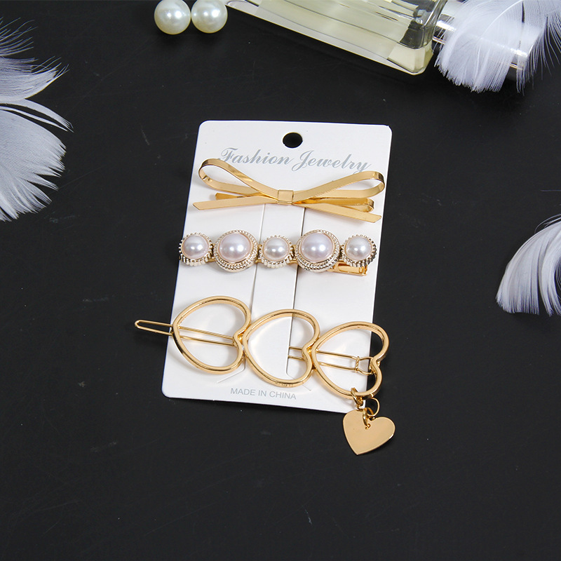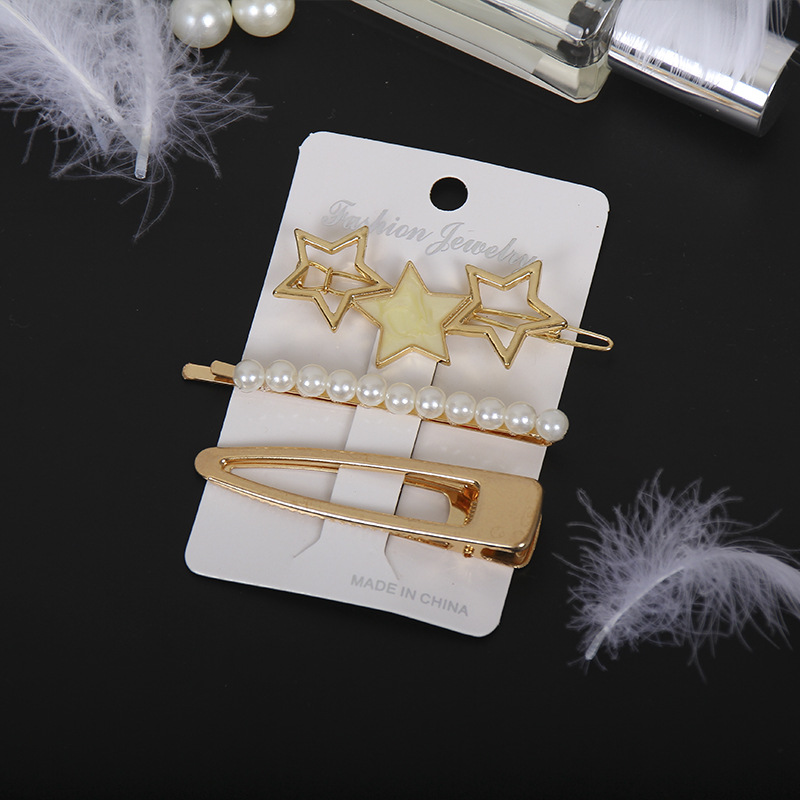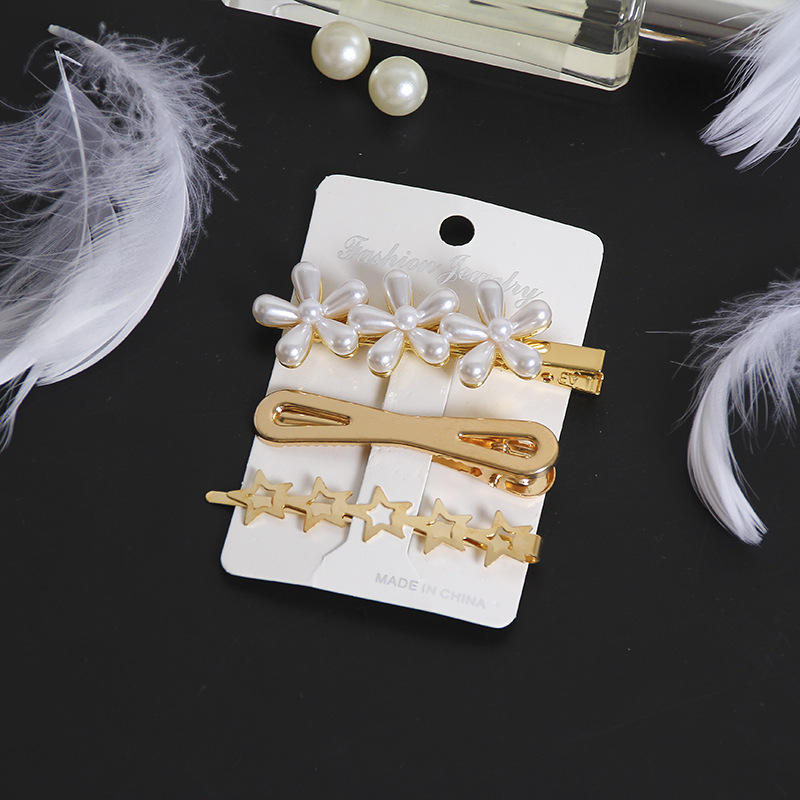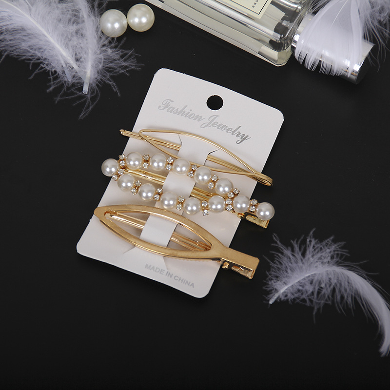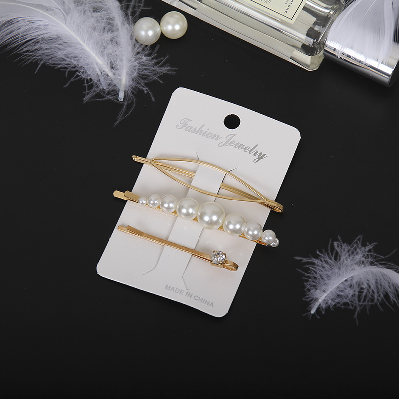 韩国东大门ins珍珠发夹 合金三件套装发卡奢华一字夹甜美头饰批发