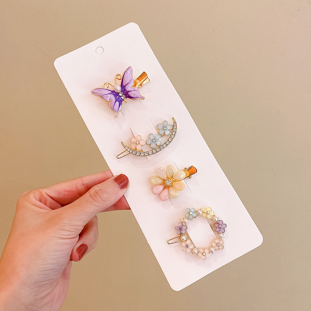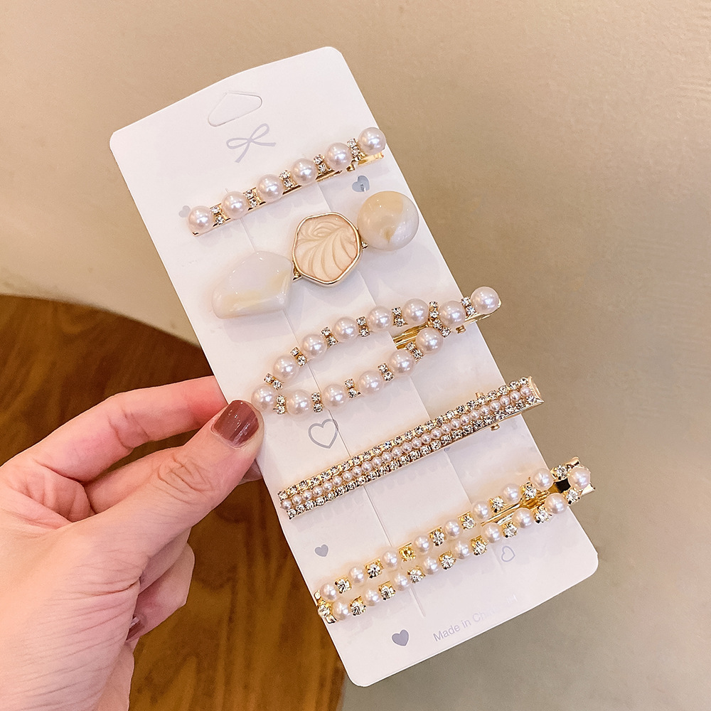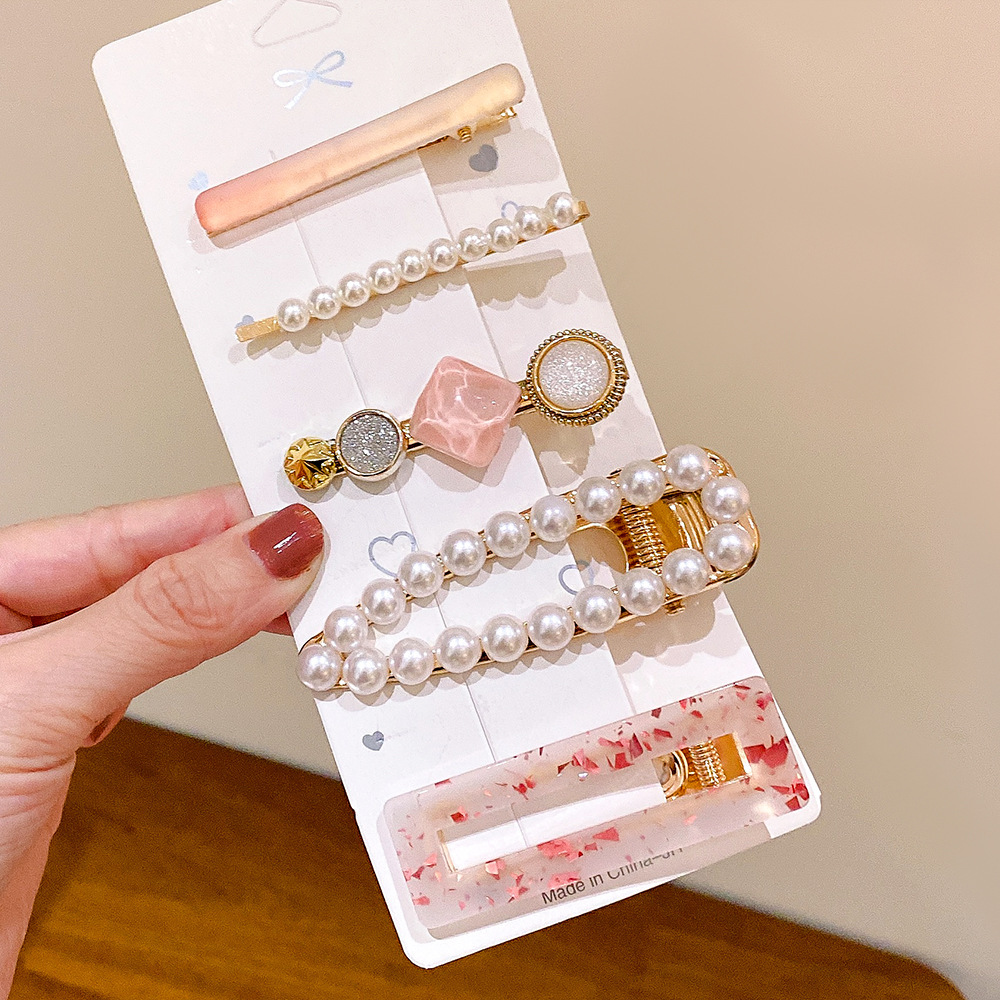 发夹女网红羽毛刘海侧边夹发卡套装高级感韩国小熊珍珠夹子发饰