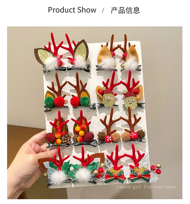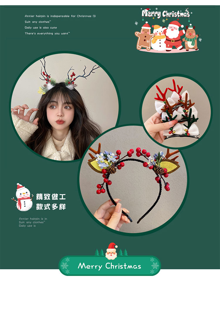 跨境圣诞节头饰可爱卡通装饰品儿童圣诞发夹成人麋鹿发箍发饰批发