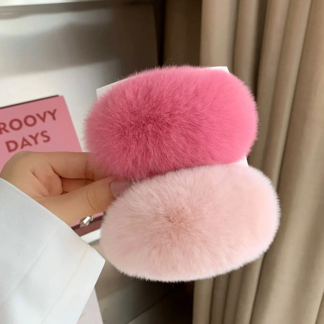 秋冬新款夹子毛毛发卡韩国超仙毛绒发饰獭兔毛超大可爱皮草bb边夹