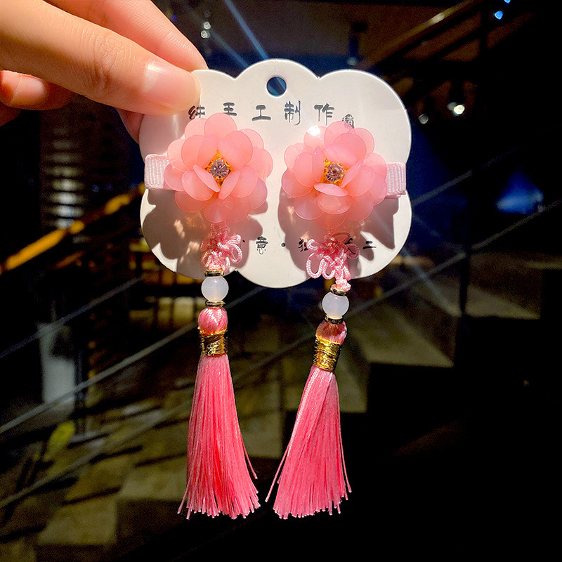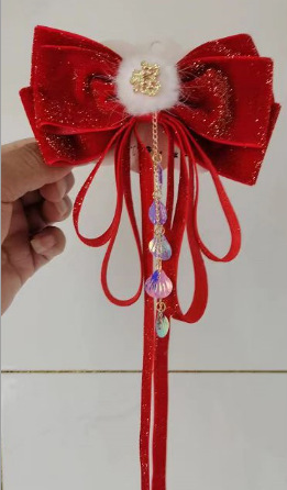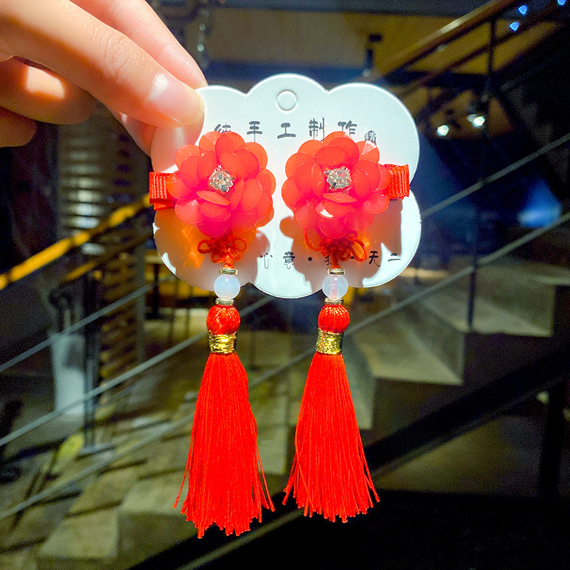 儿童新年红色唐装头饰女童超仙中国古风发饰宝宝蝴蝶流苏汉服发夹