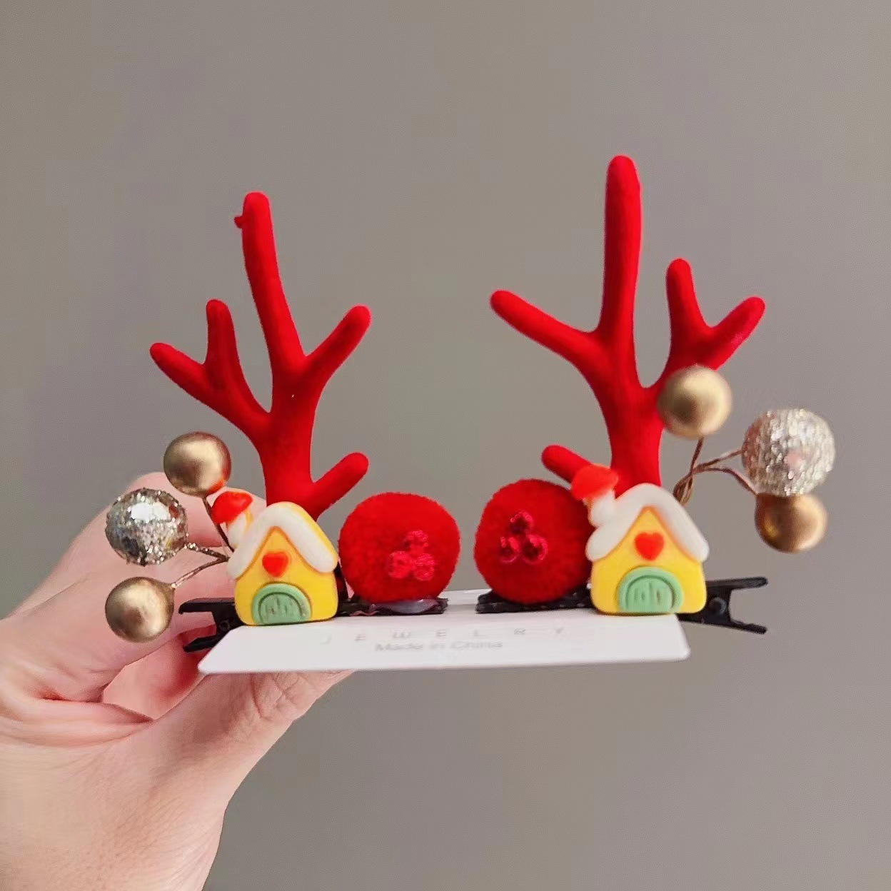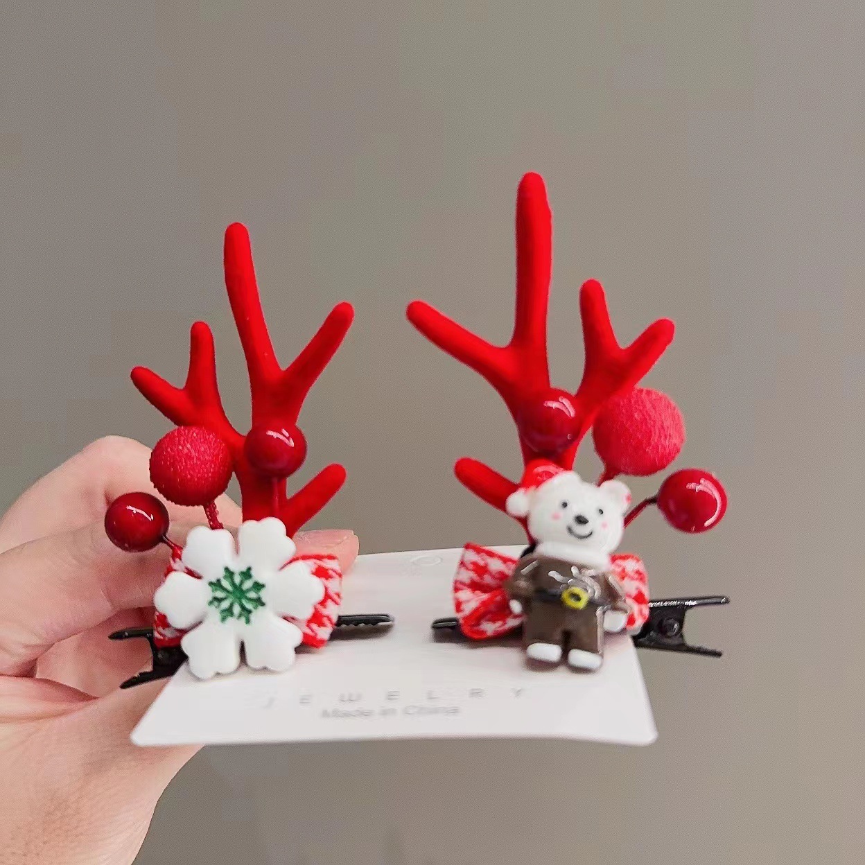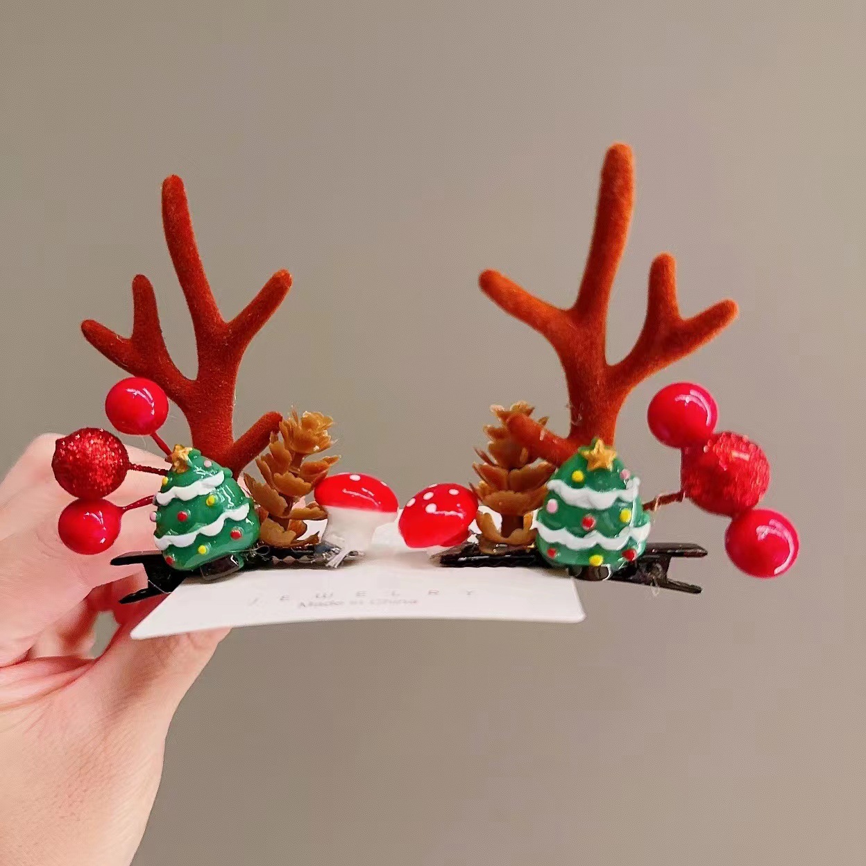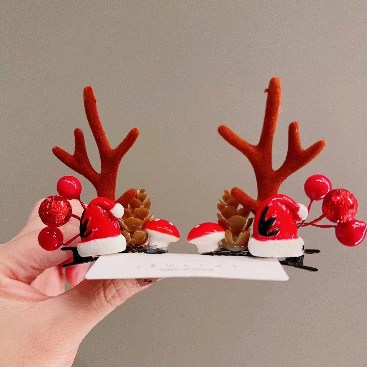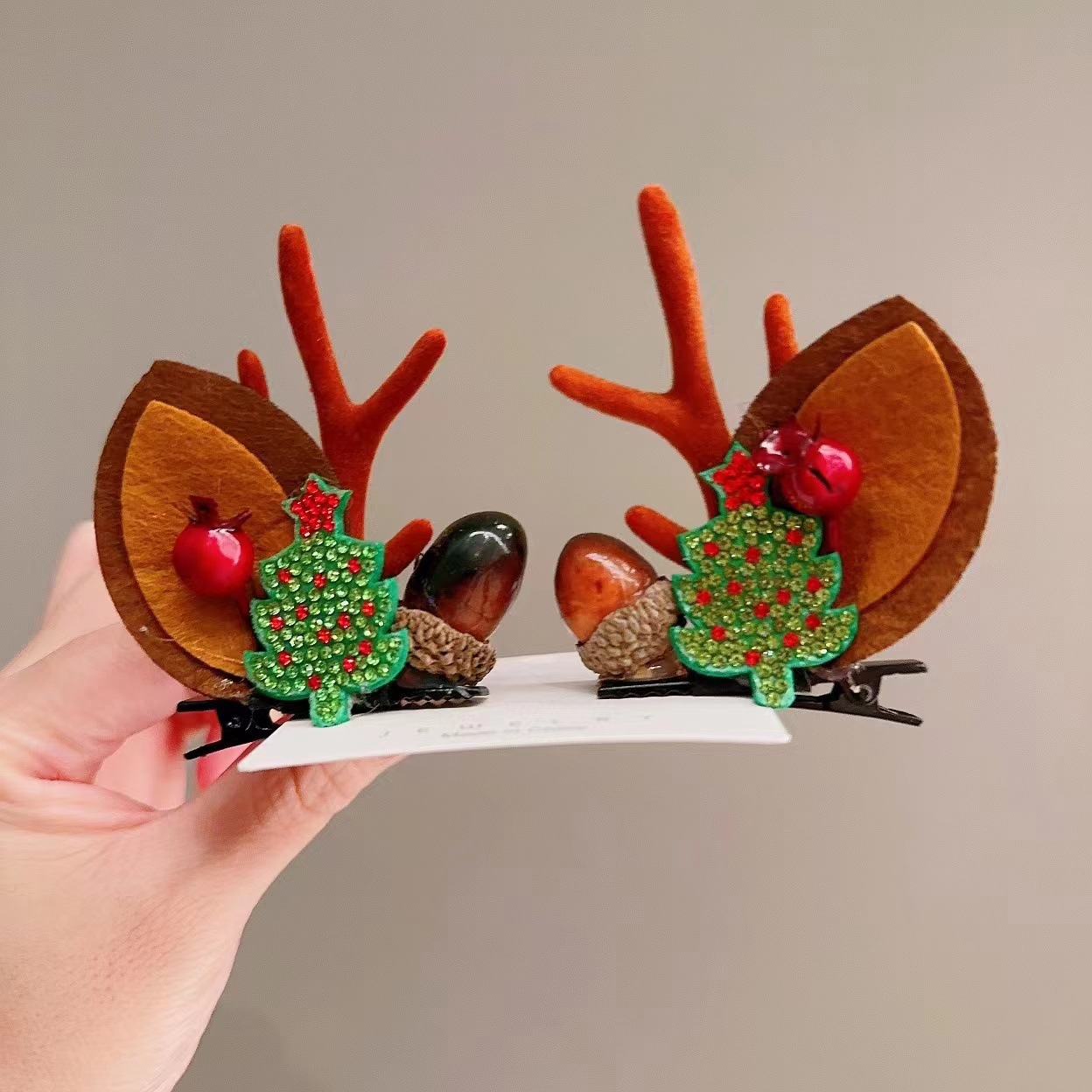 圣诞节发夹森系可爱小鹿角头饰儿童圣诞发夹发饰卡通麋鹿圣诞礼品