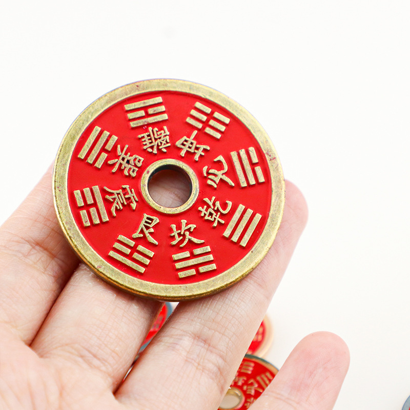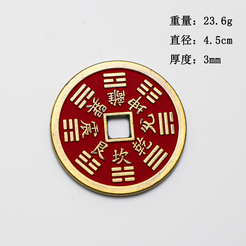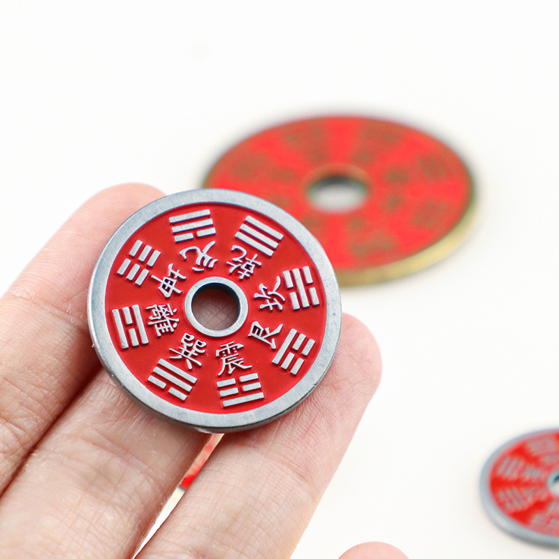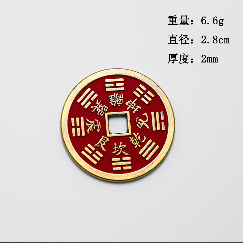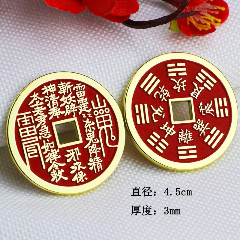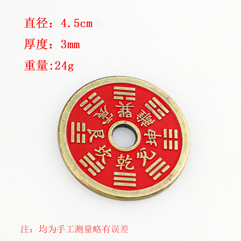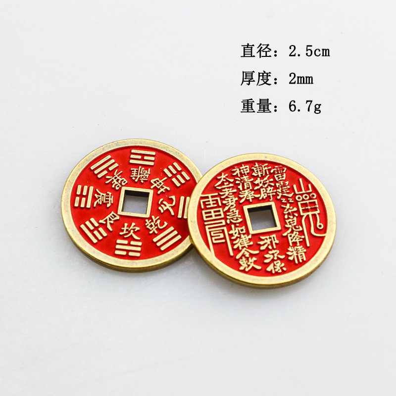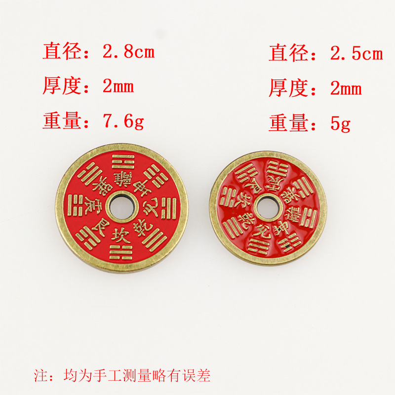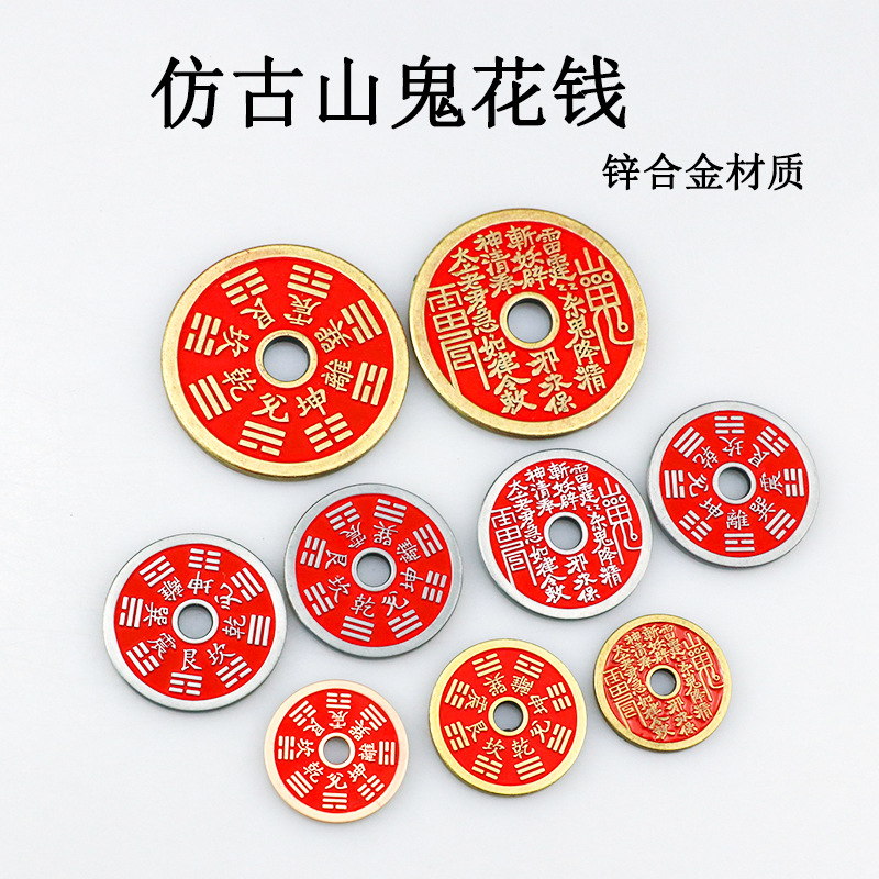 古玩复古金属工艺品朱砂红仿古钱币山鬼花钱摆件中式八卦钱挂件