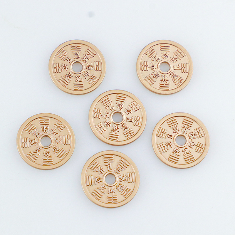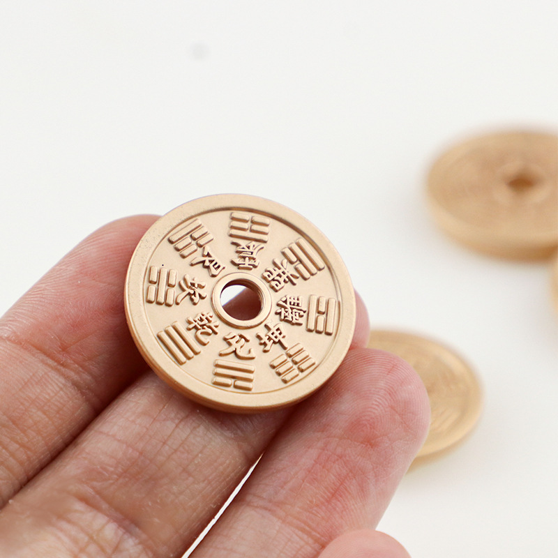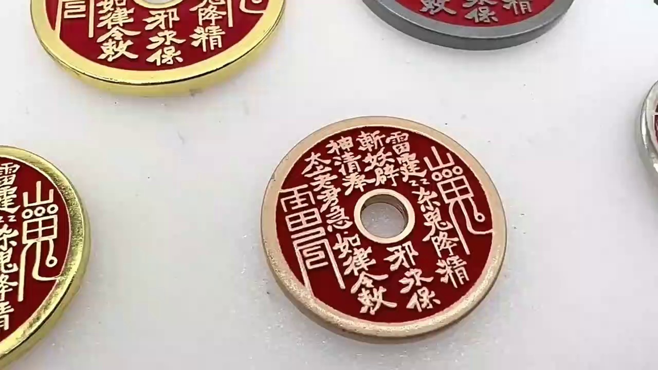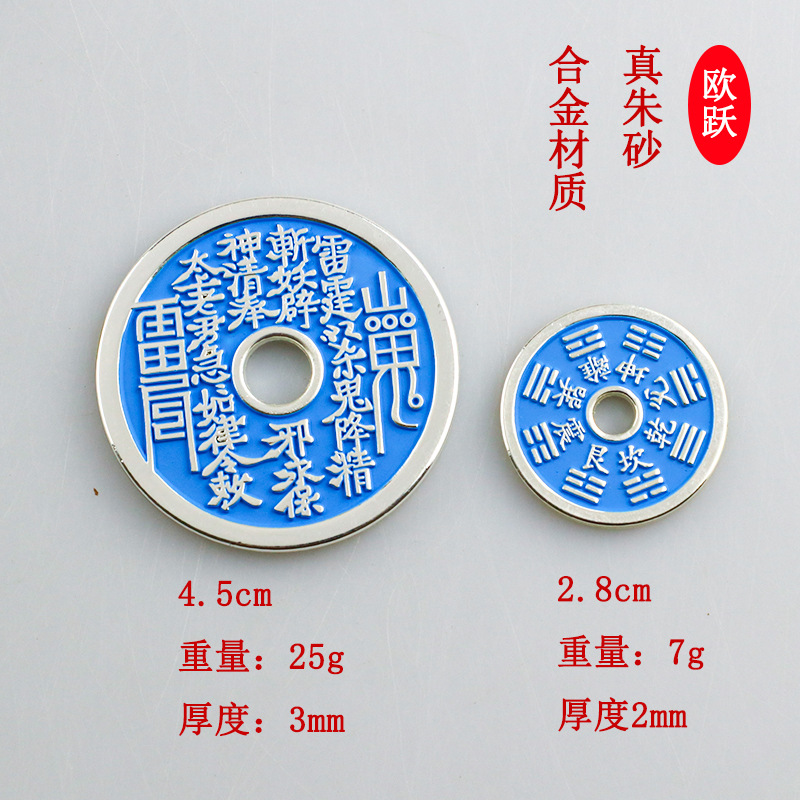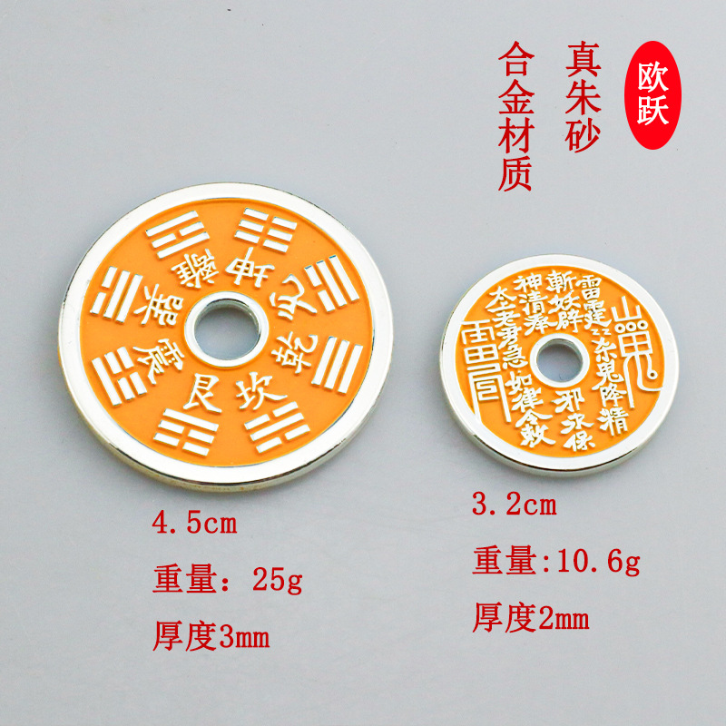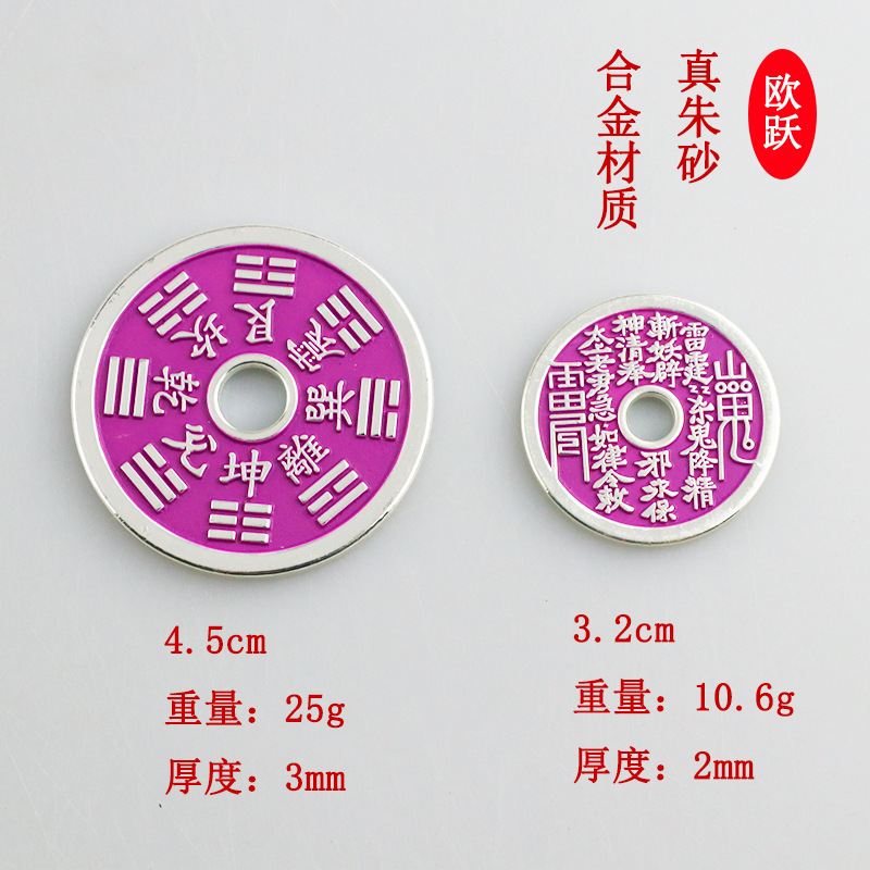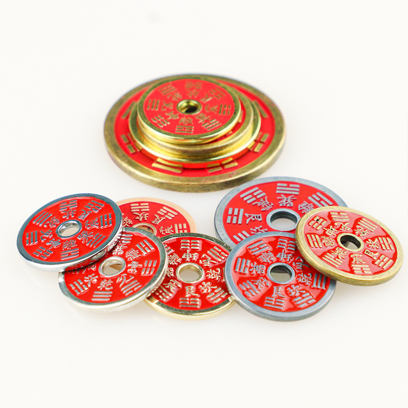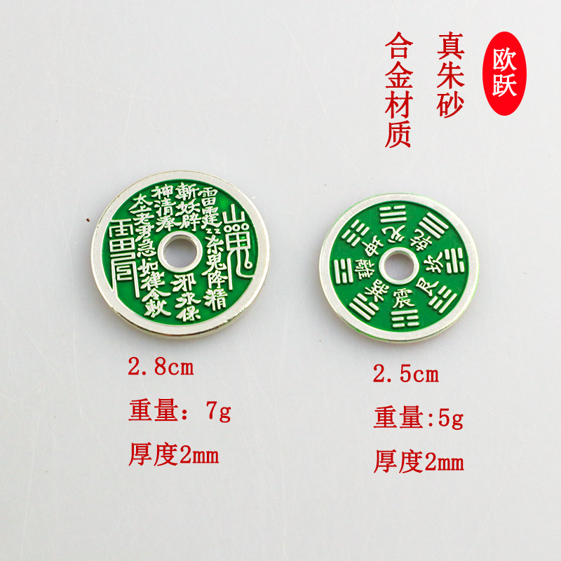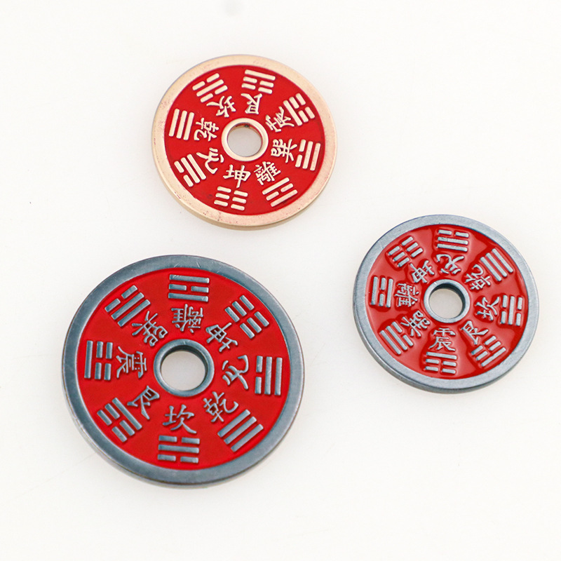 古玩复古金属工艺品朱砂红仿古钱币山鬼花钱摆件中式八卦钱挂件