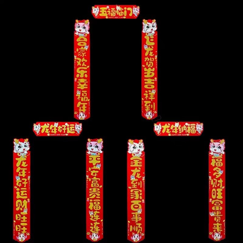对联 2024龙年春节铜版纸烫金对联 植绒金粉春联地摊年货厂家批发