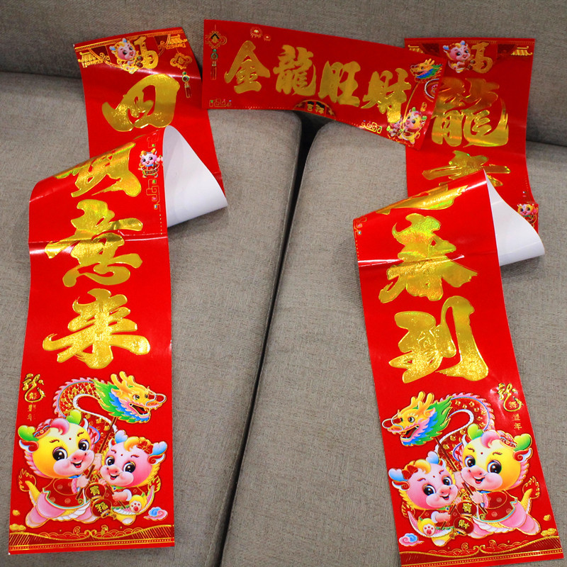2024龙年新款对联批发满烫金植绒春节春联厂家直销年货套装大礼包