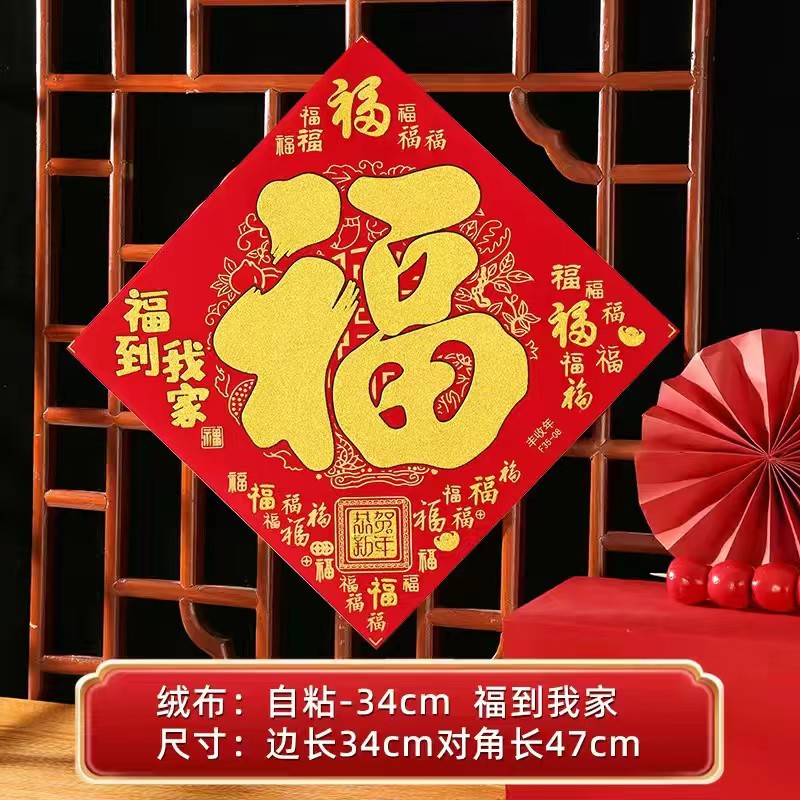 对联春节家用2024新年龙年过年绒布自粘福字对贴公司礼品植绒春联