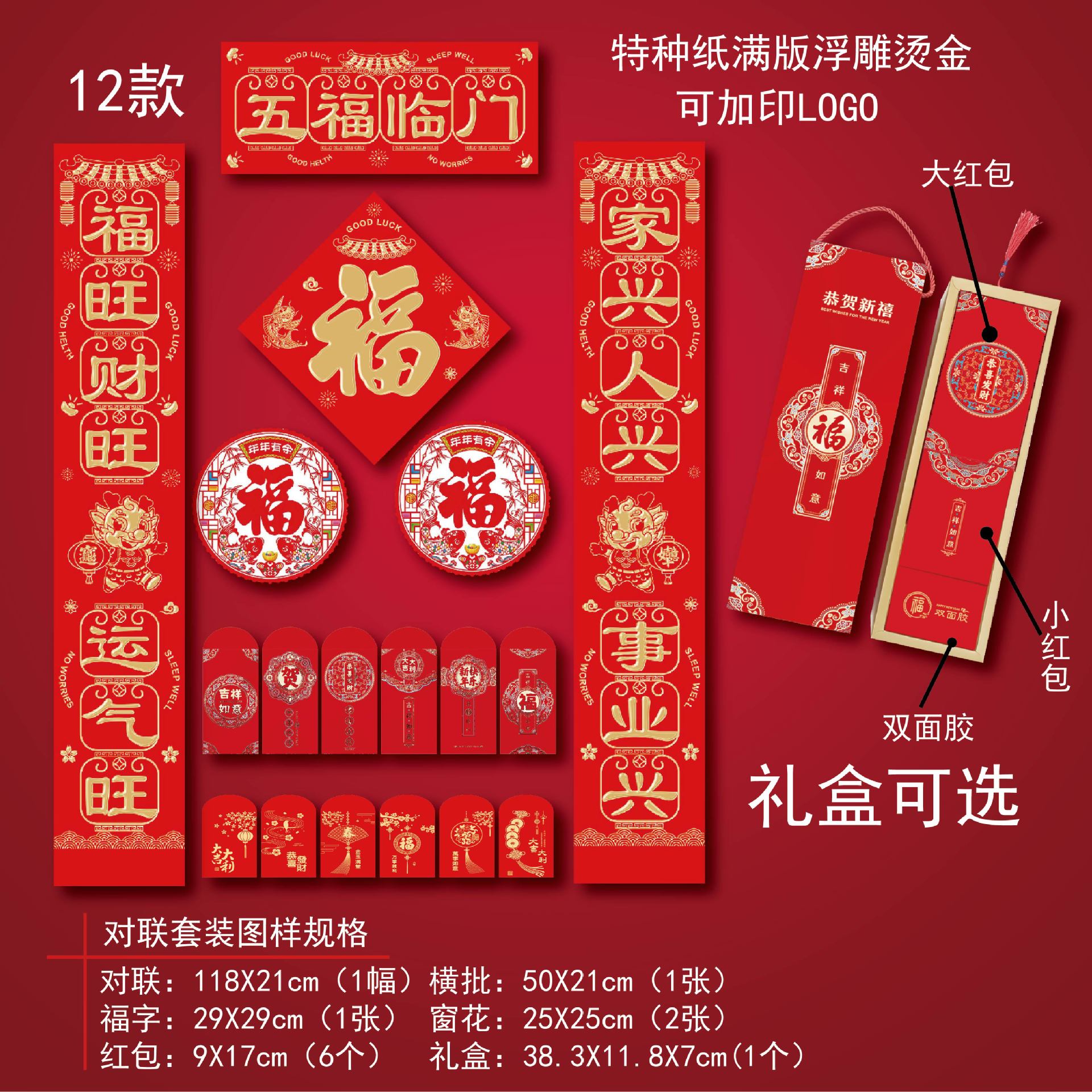 植绒对联春联龙年礼盒套装特种纸福字门贴红包烫金新年对联批货