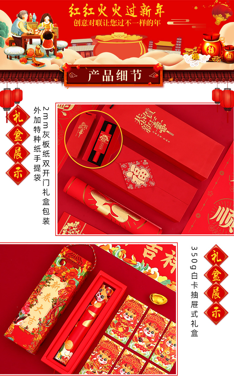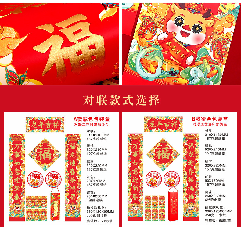 2024龙年对联定制大礼包春节广告春联福字烫金礼盒企业定制加logo