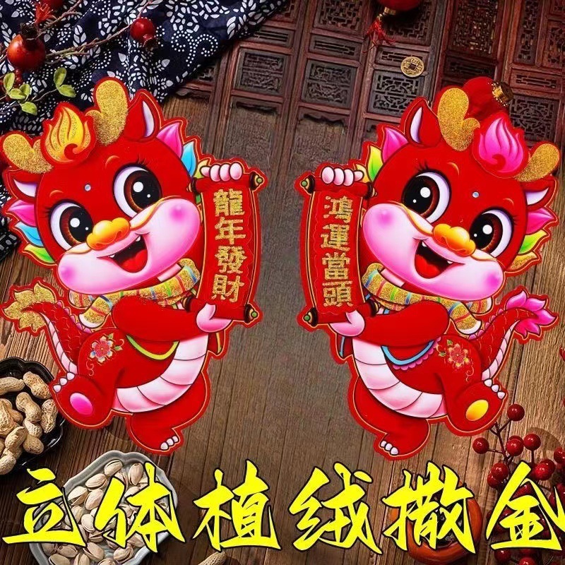 2024龙年新年春联过年对联大礼包批发烫金年画门贴纸大全春节家用