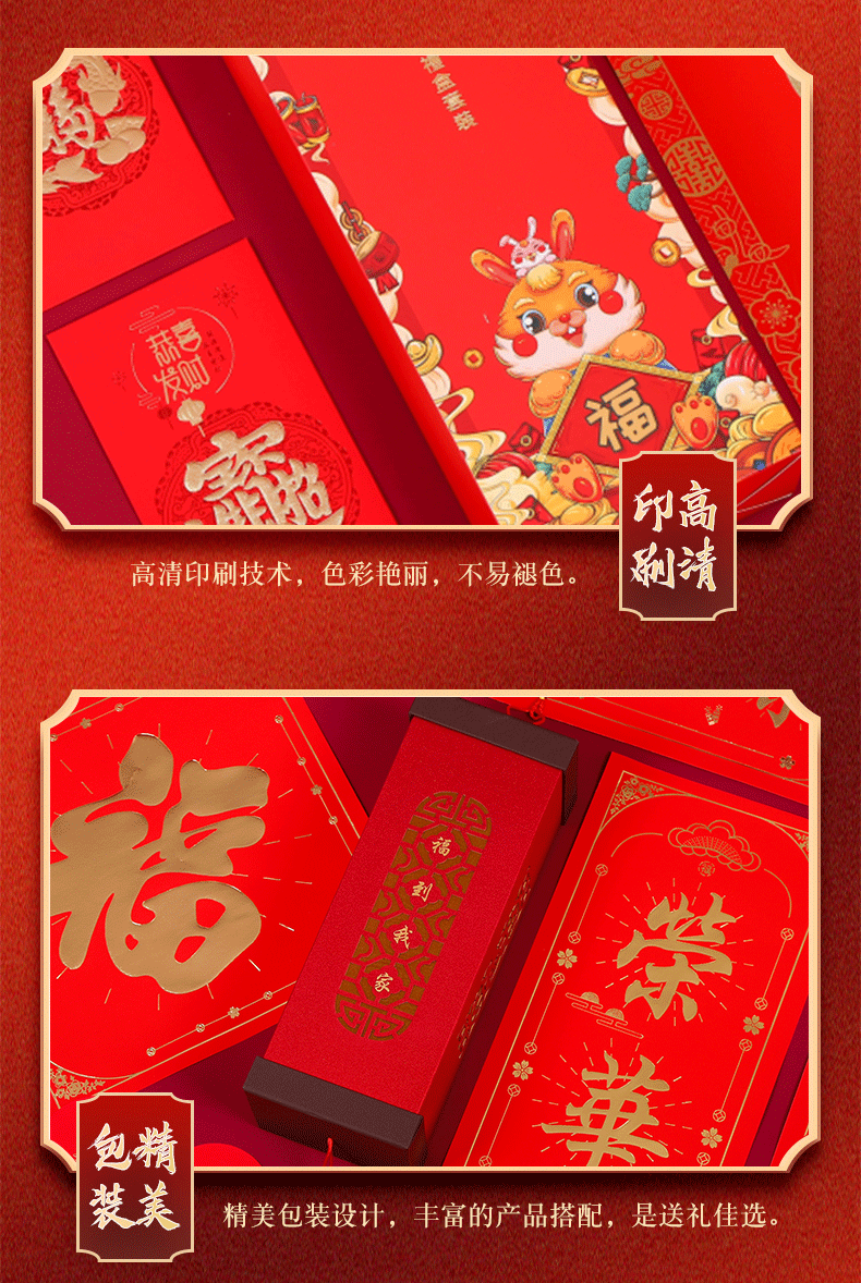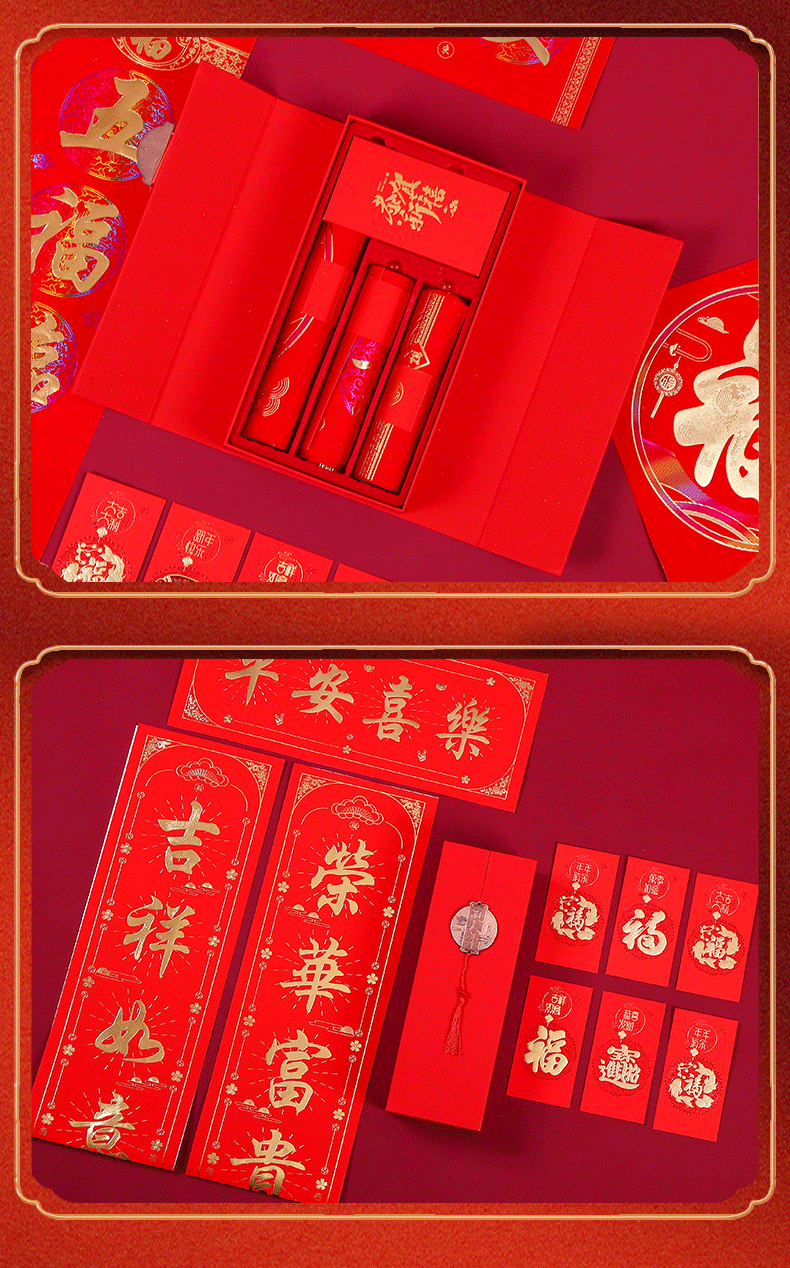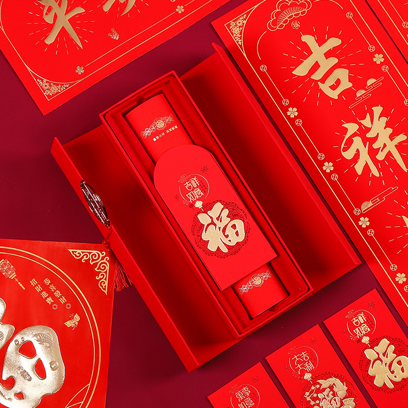 2024龙年对联礼盒植绒春联大礼包福字红包春联春节摆地摊套装批发