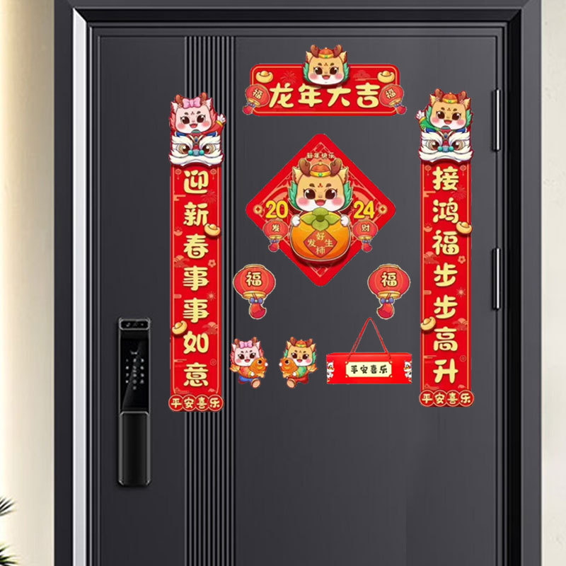 龙年春联套装大礼包新年春节无痕全磁吸对联批发装饰门贴春联布置