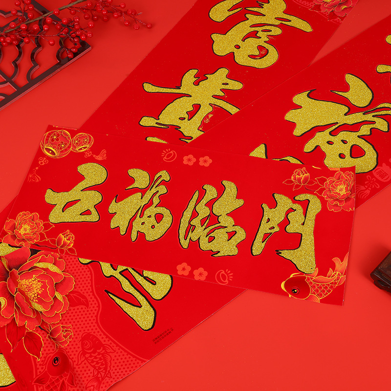新款对联铜版纸春联春节福字烫金植绒对联地摊年货厂家直销批发