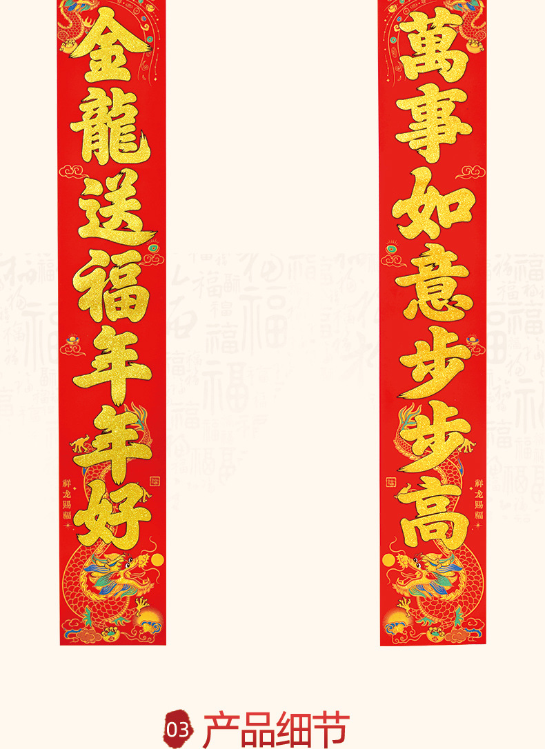 新款2024龙年龙版春节高档绒布春联过年新年家用大门装饰门联批发