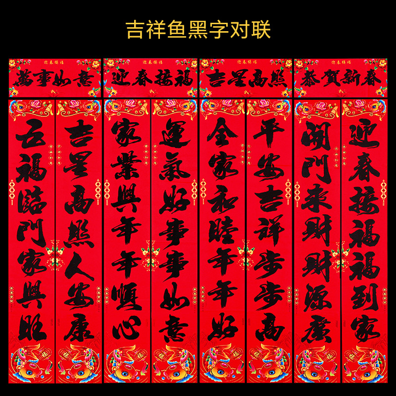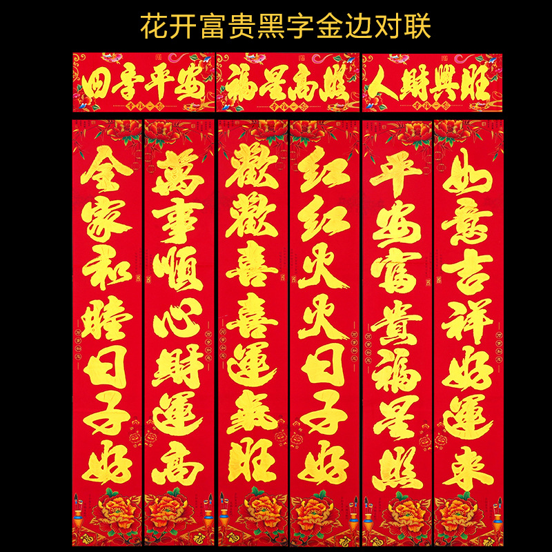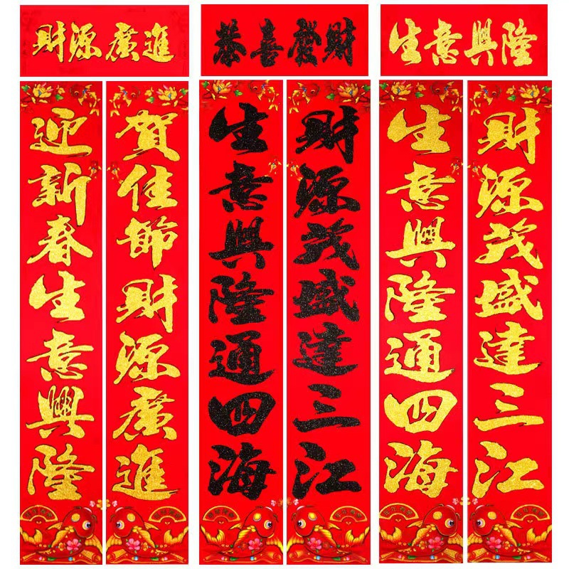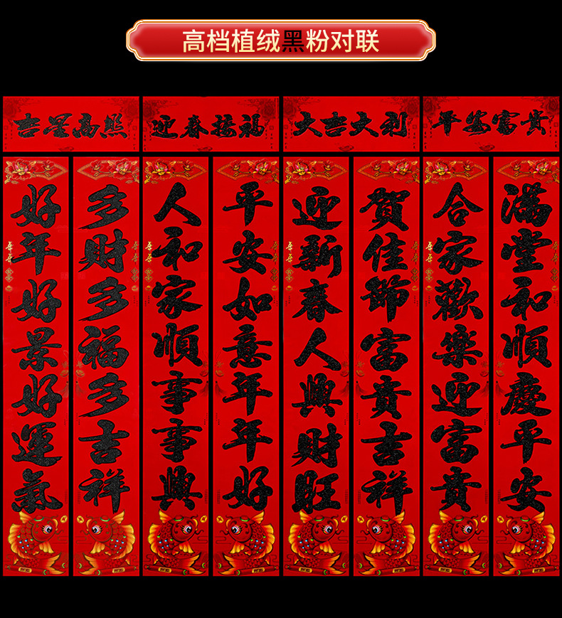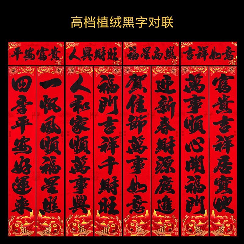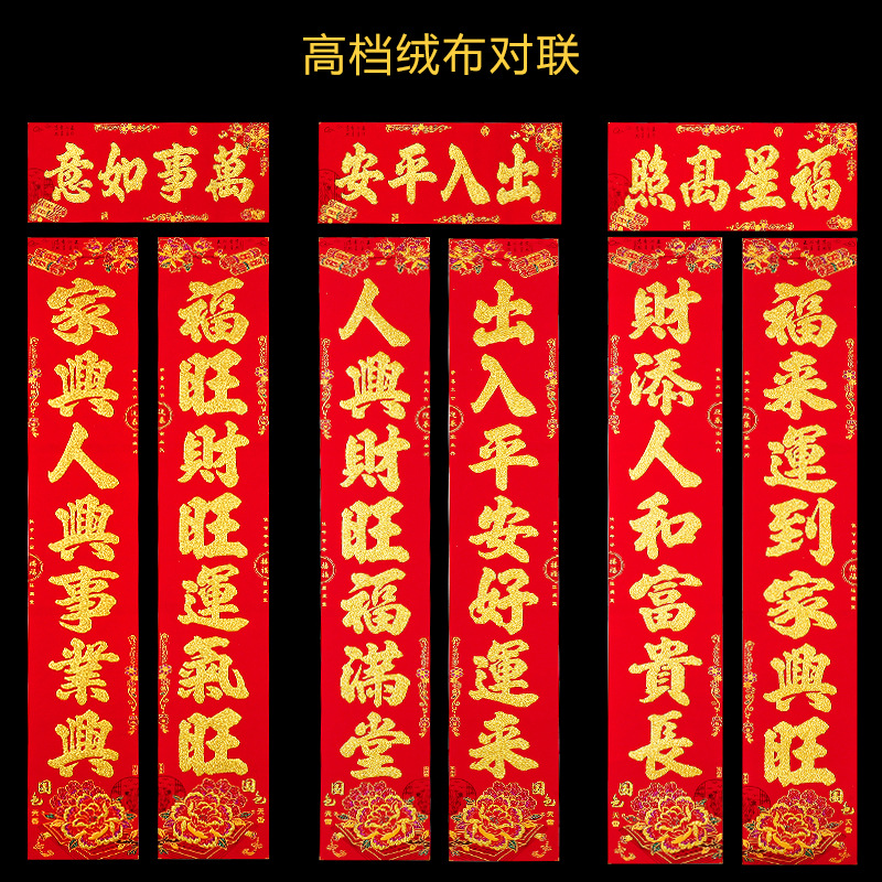 2024龙年新款铜版纸烫金对联 春节地摊货源金粉植绒春联厂家批发