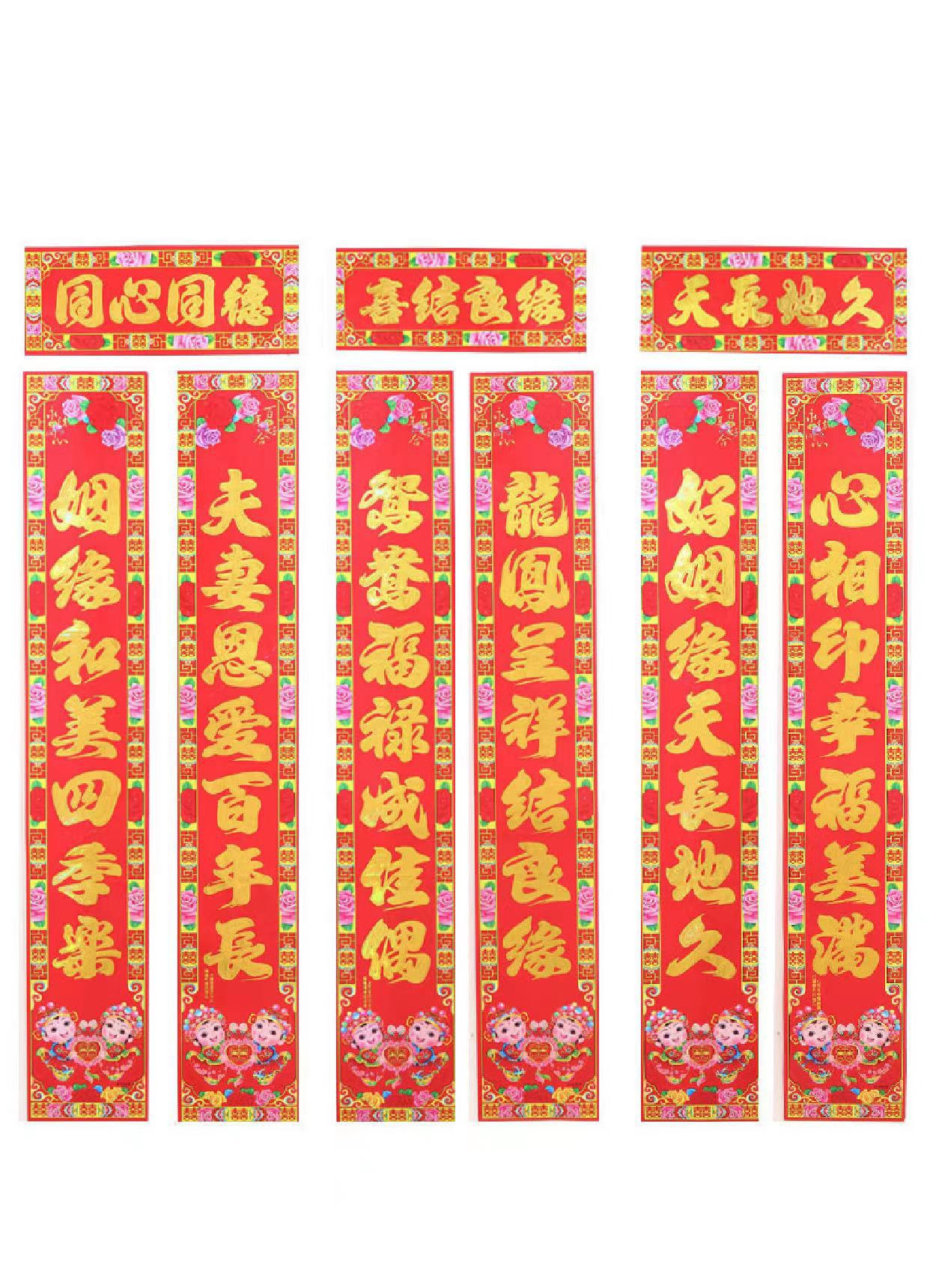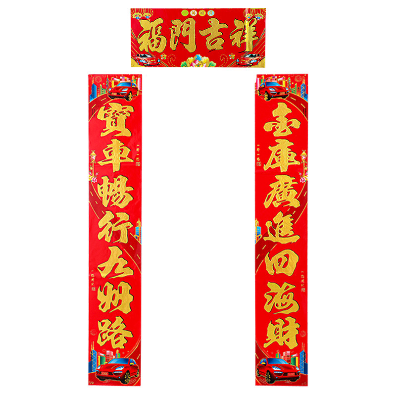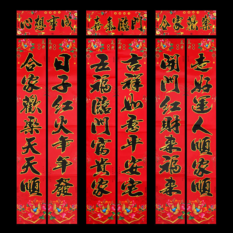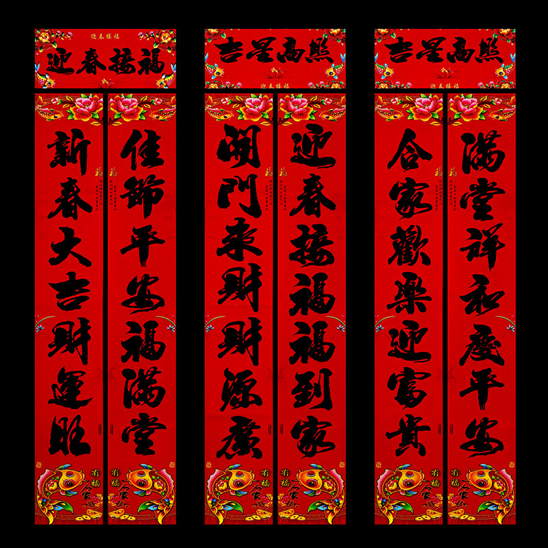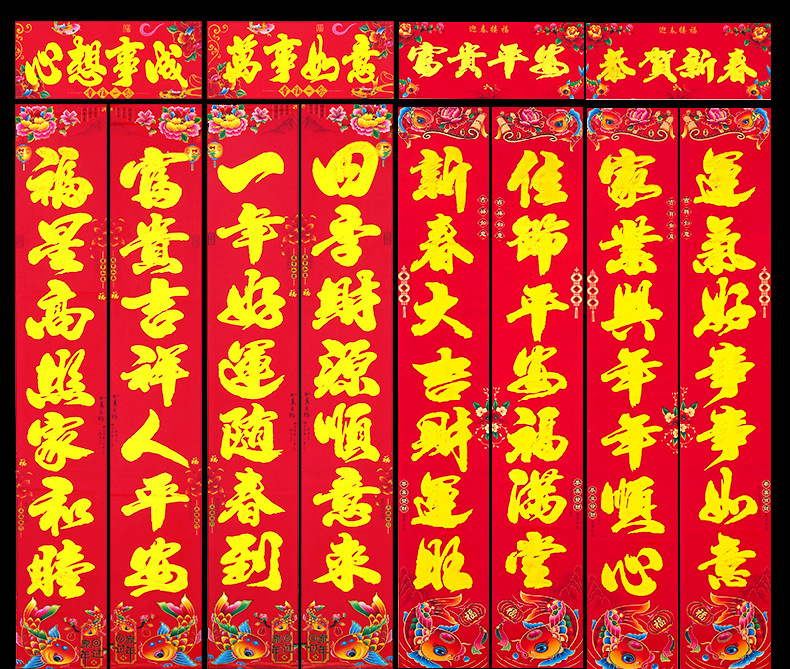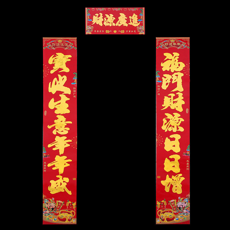 2024龙年新款铜版纸烫金对联 春节地摊货源金粉植绒春联厂家批发