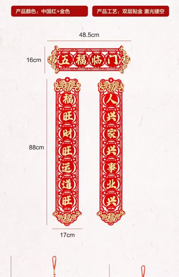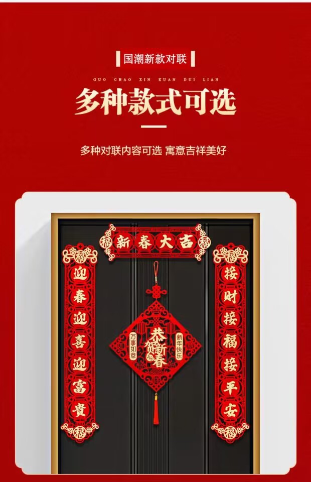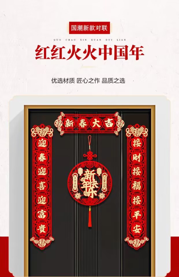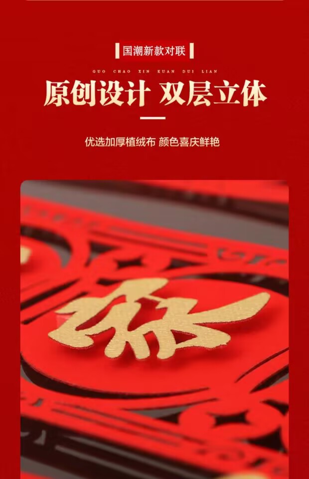 龙年春节对联家用过年春联门联立体绒布剪纸福字贴乔迁装饰