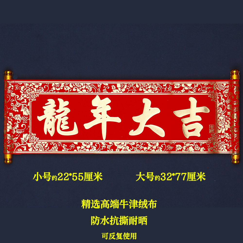 2024新年春节四字卷轴挂联绒布小对联年会舞台表演道具横批珲春