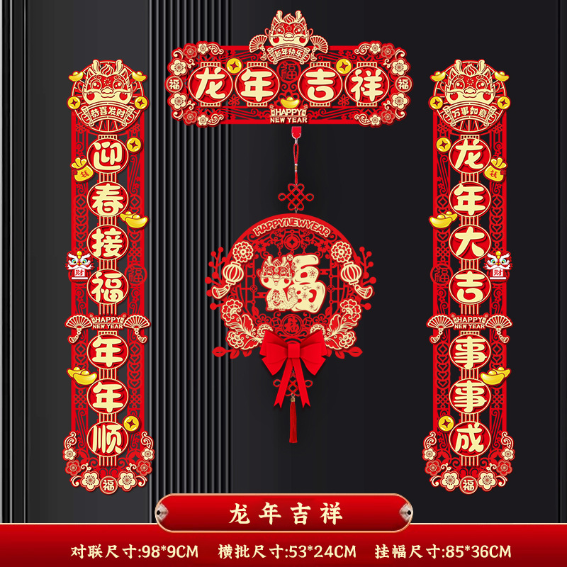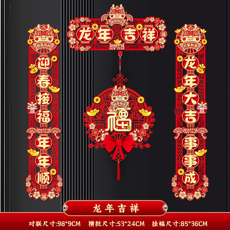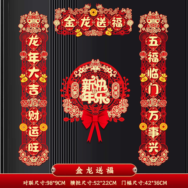 春联家用2024新款龙年绒布对联新年新春过年福字大门口创意挂件