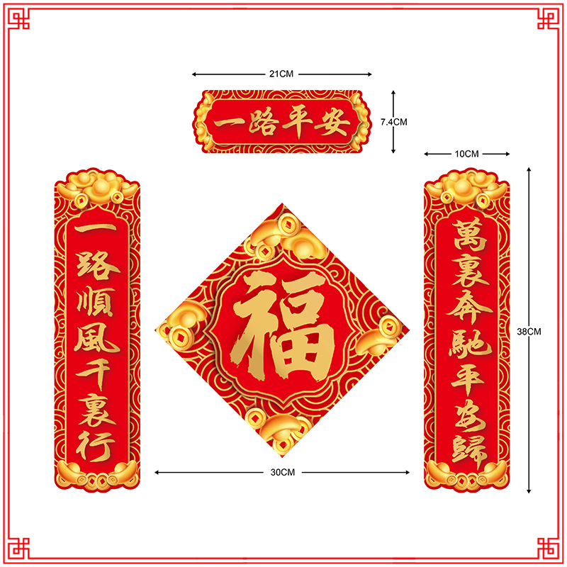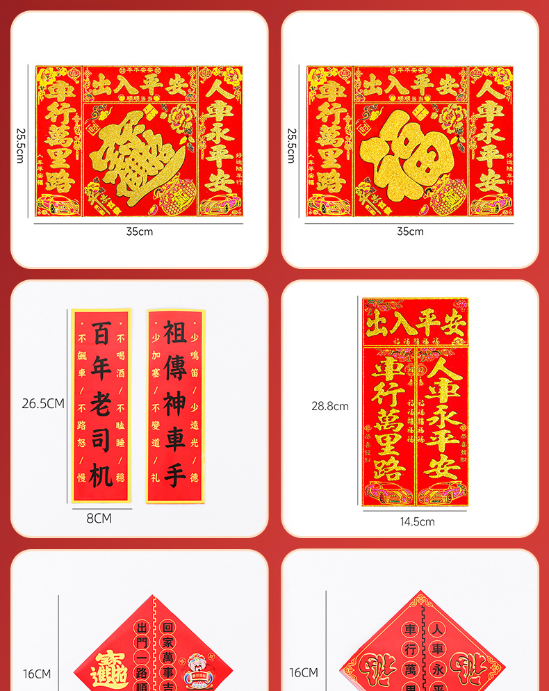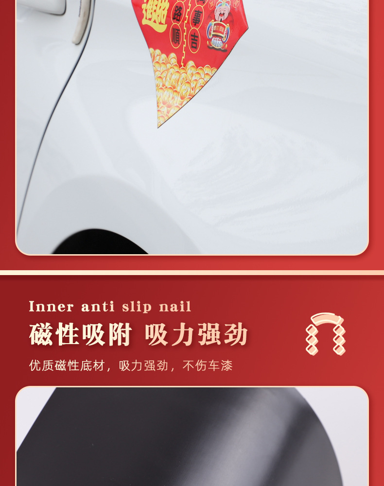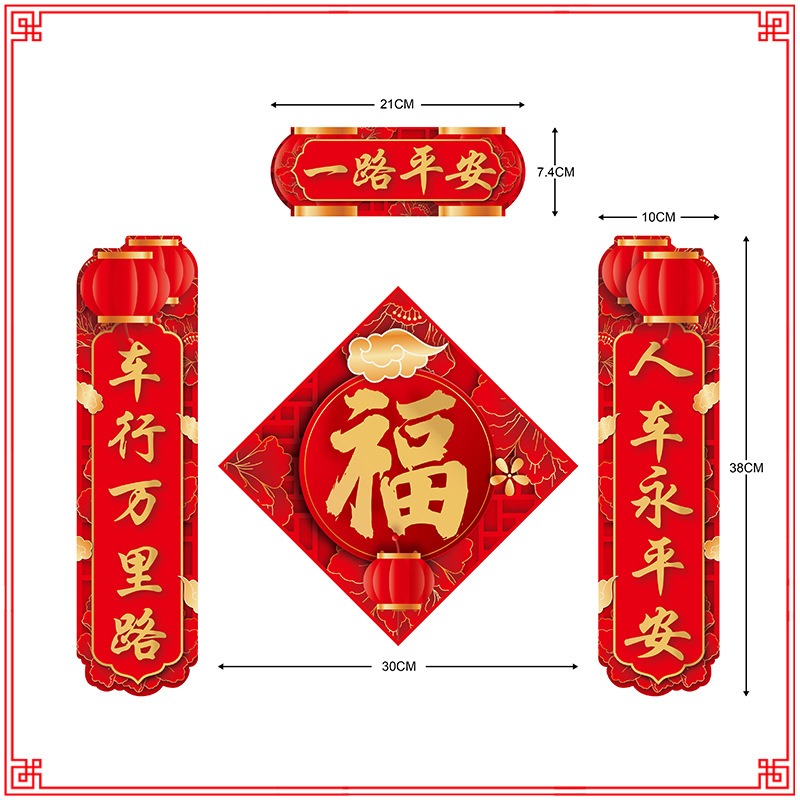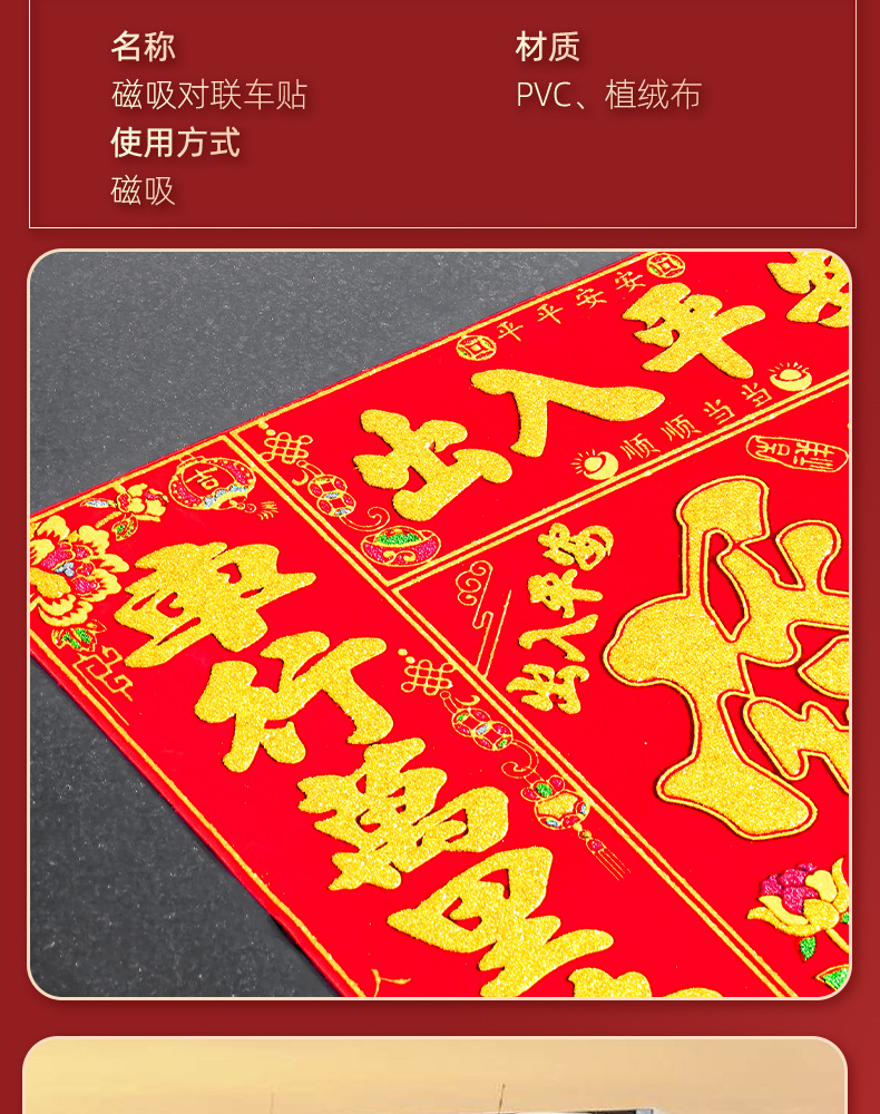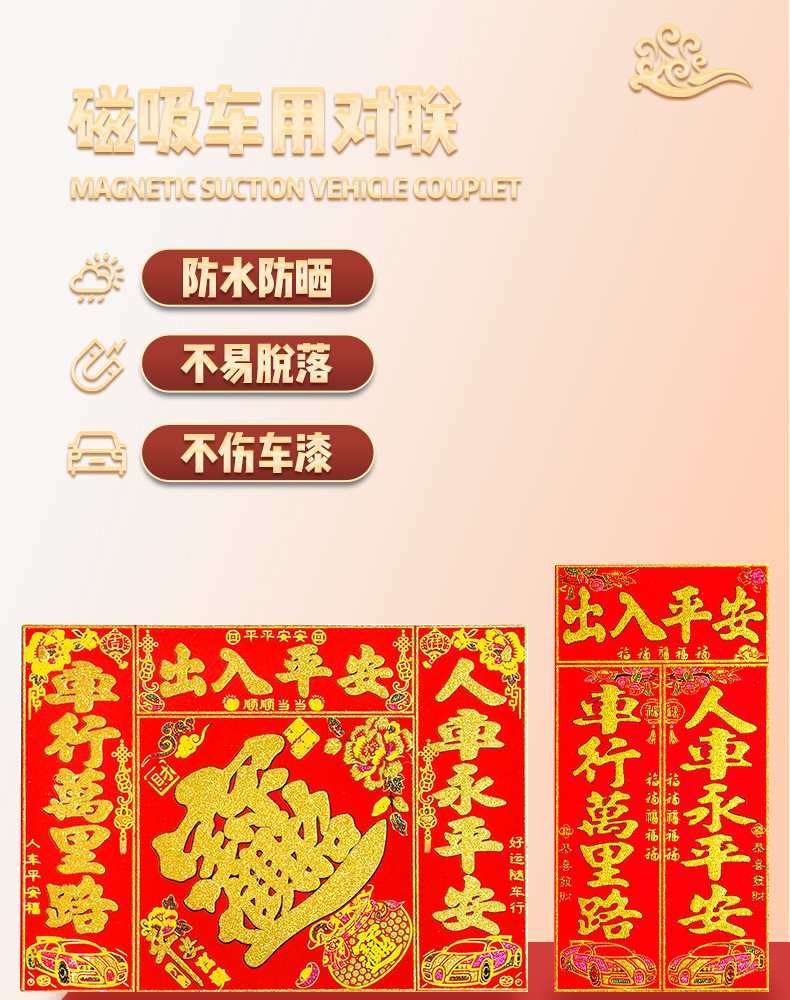 2024年新款绒布鎏金金粉磁吸车对联磁铁车贴福字兔年春节新年车饰