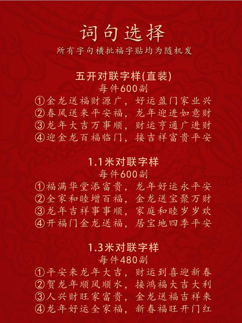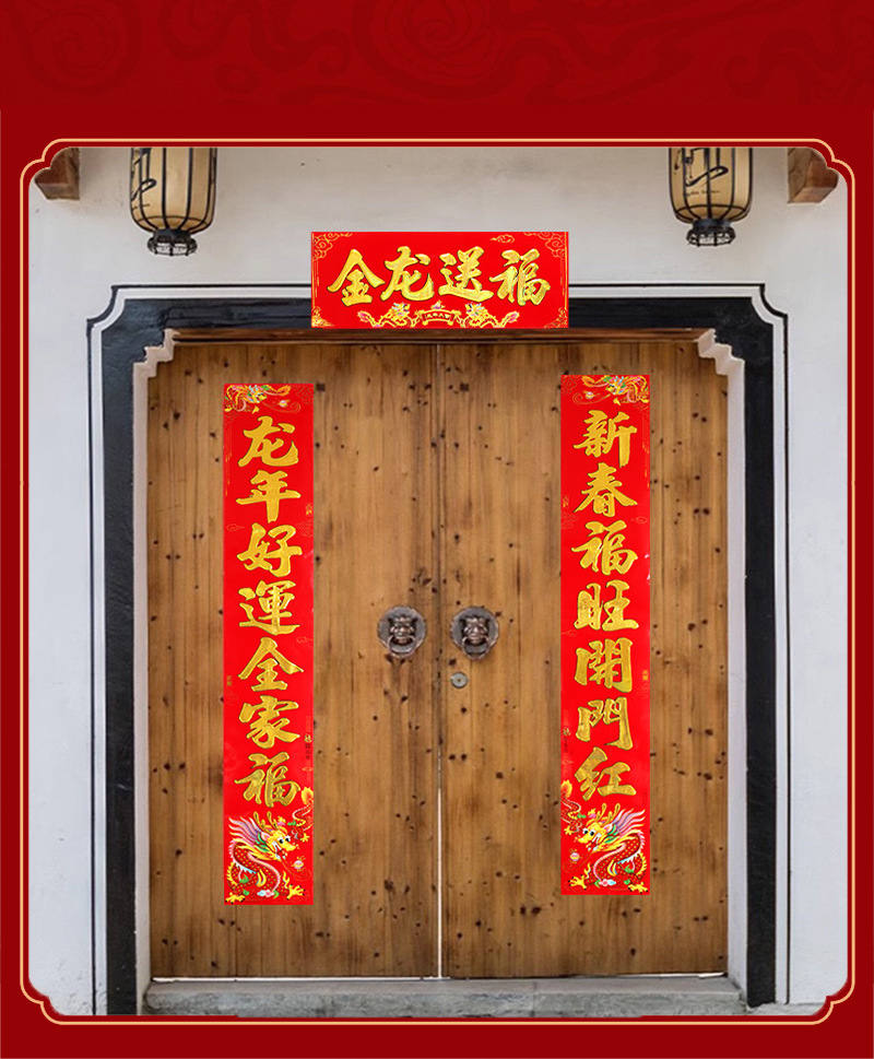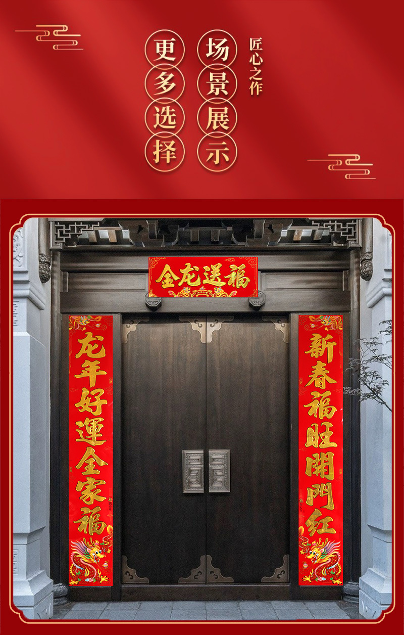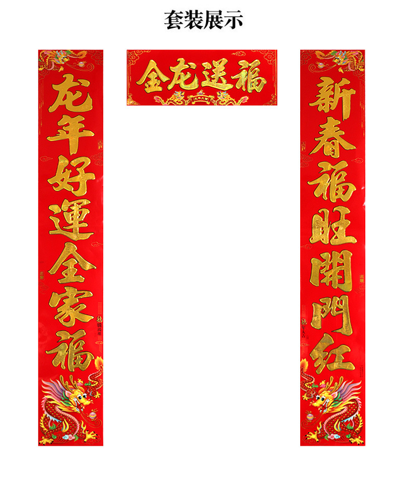 新款2024龙年铜版纸烫金金字春节对联春联地摊年货套装大礼包批发