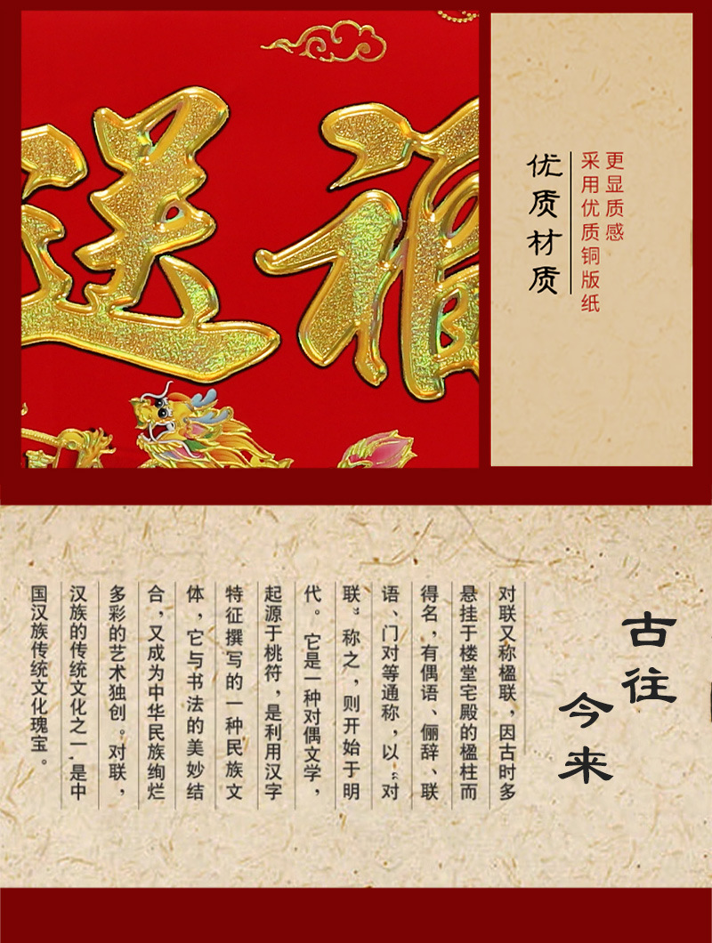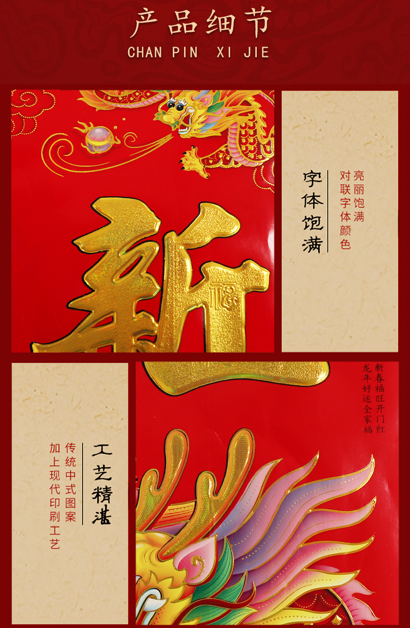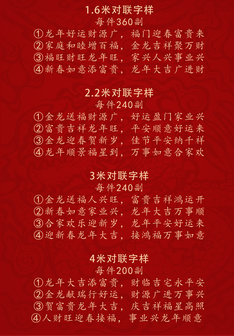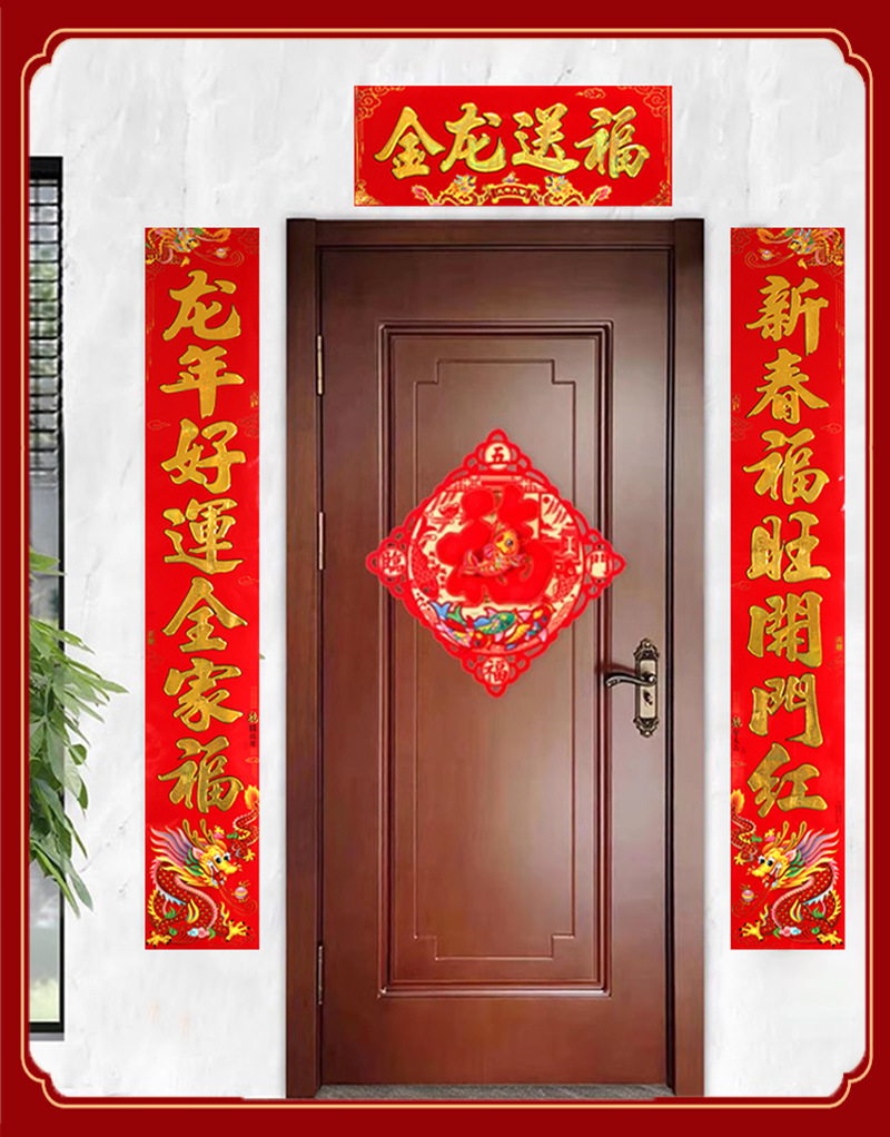 新款2024龙年铜版纸烫金金字春节对联春联地摊年货套装大礼包批发