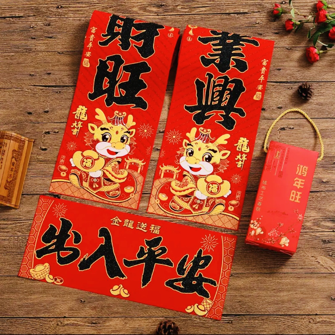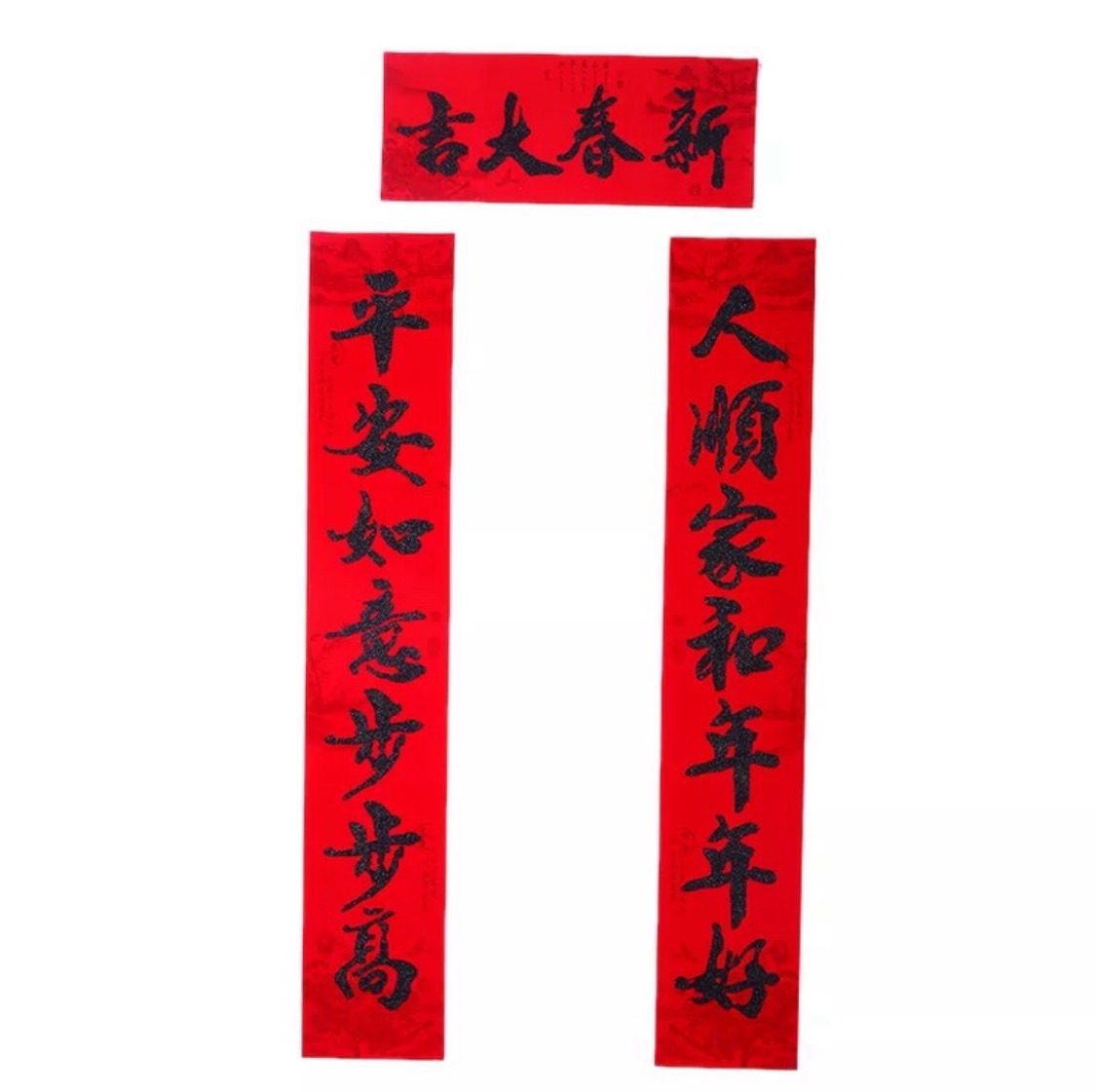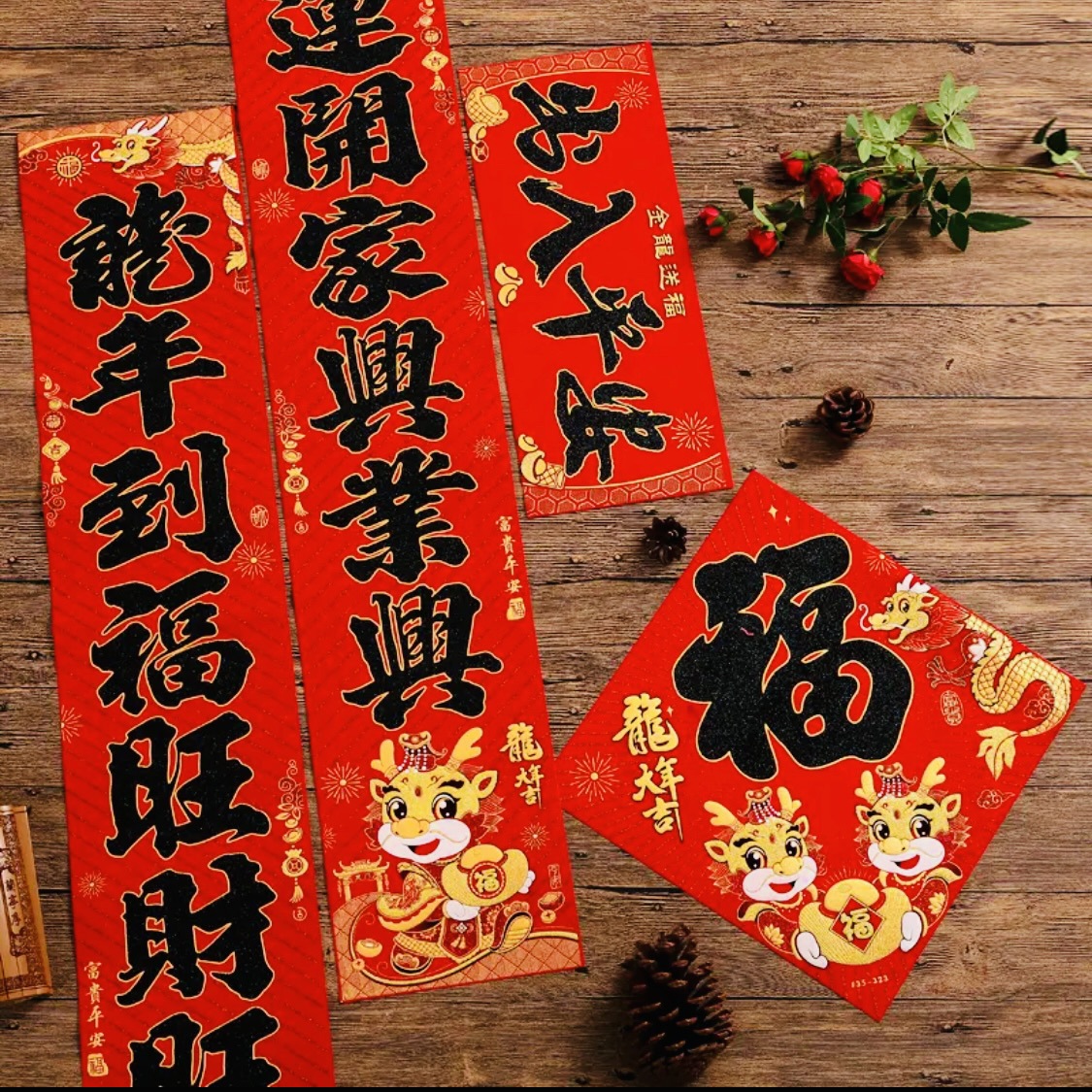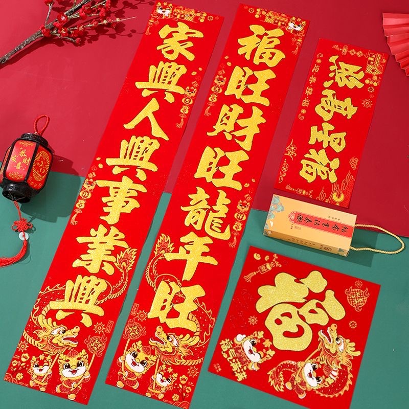 2024龙年春节春联自粘绒布生肖对联全背胶富贵龙书法植绒福字对联