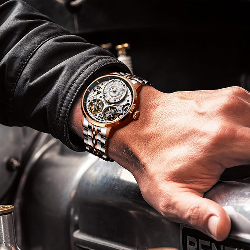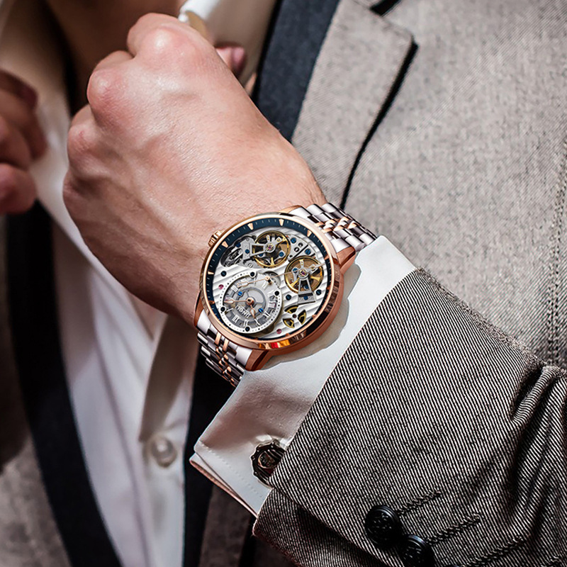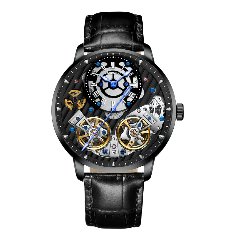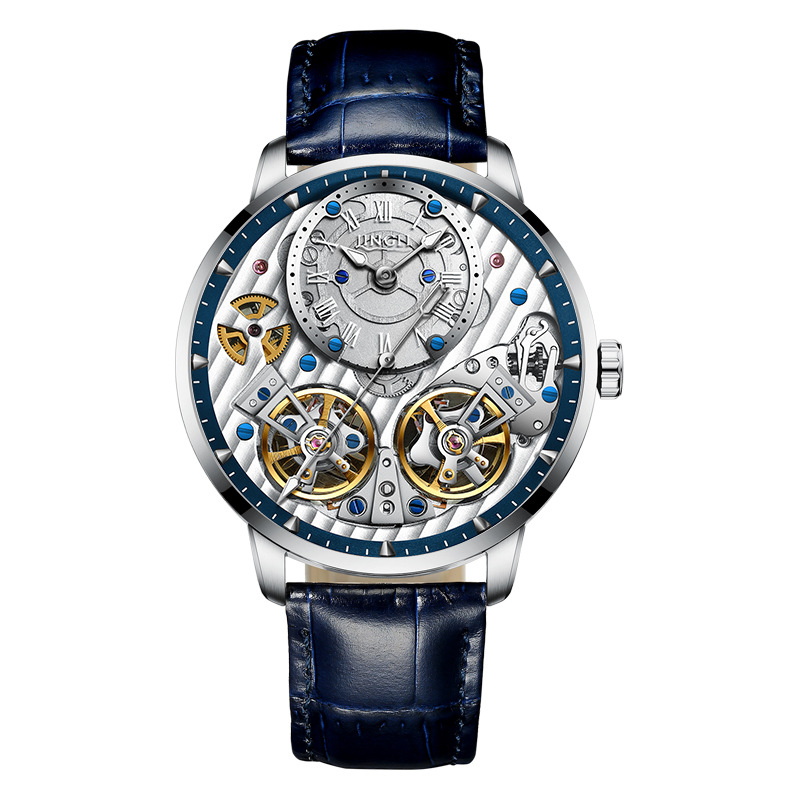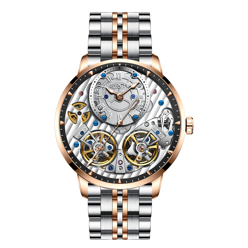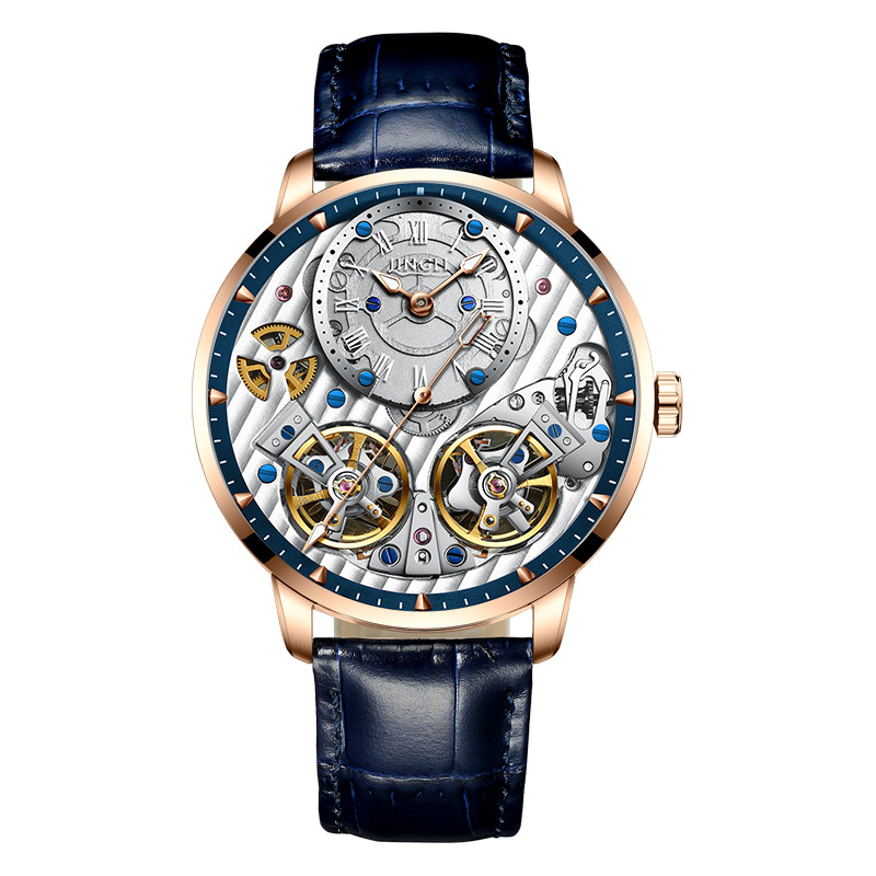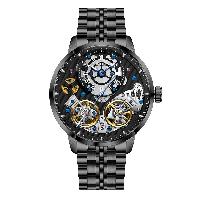 精利手表Jinlery瑞士机械表镂空双飞轮全自动机械表爆款男士手表