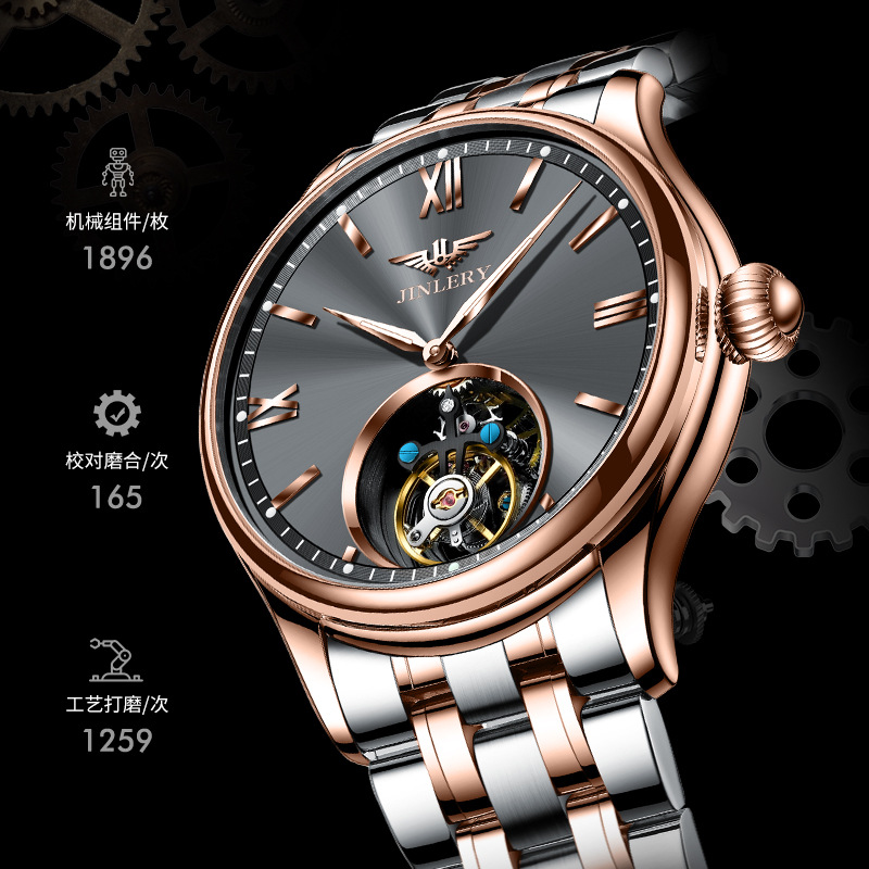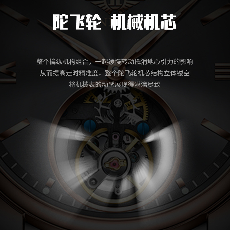 精利手表陀飞轮手表机械表代发时尚夜光商务陀飞轮手表爆款手表