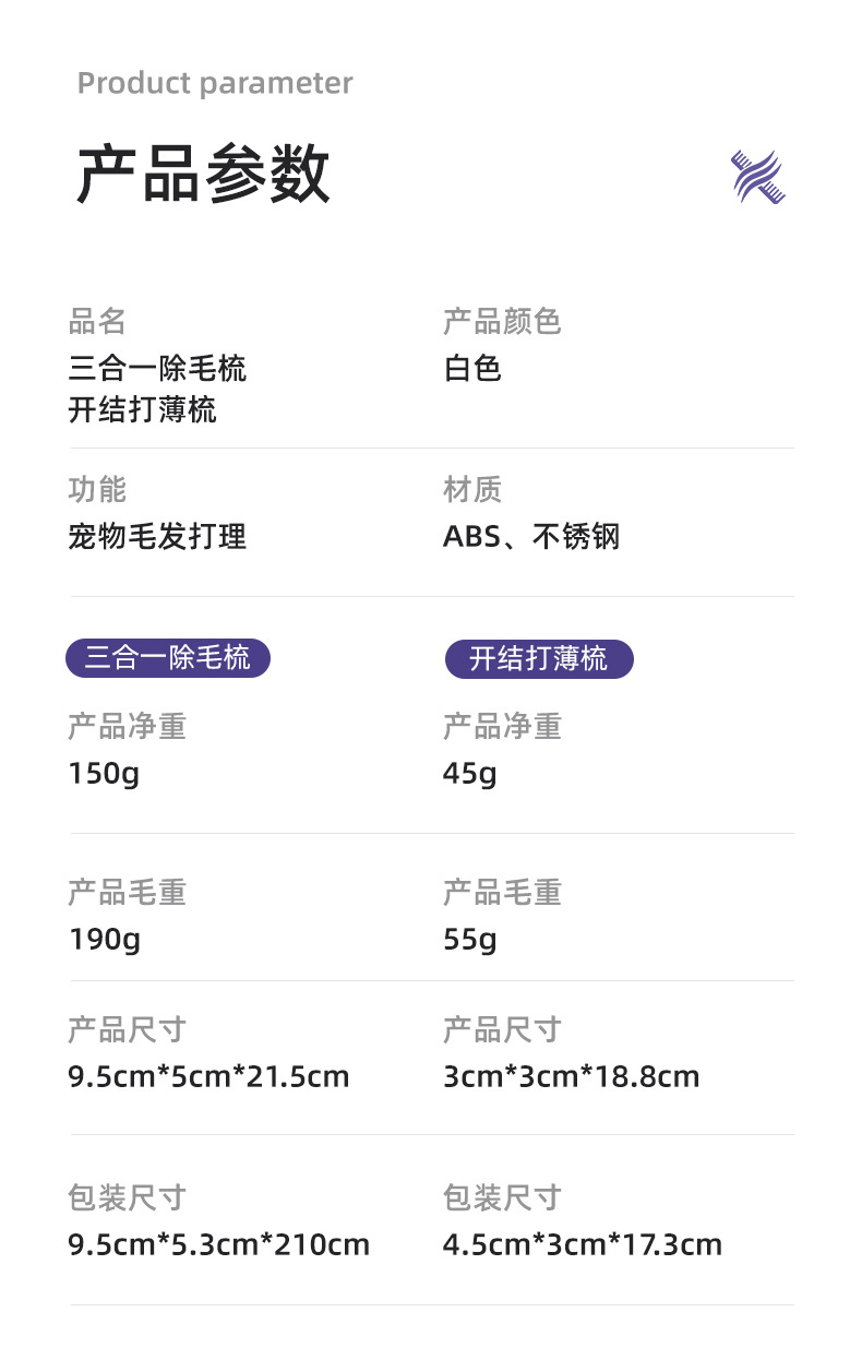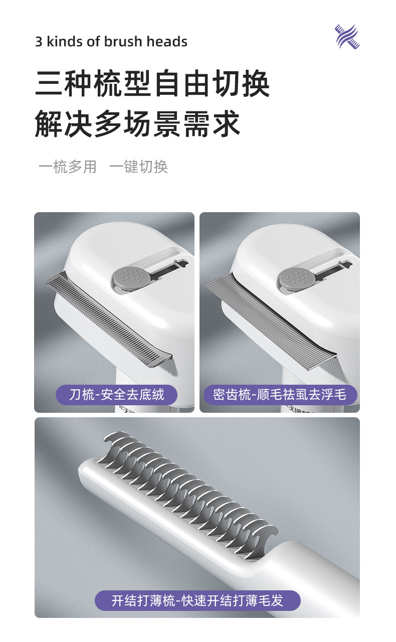 宠物梳子狗狗除毛用品猫咪打薄去浮毛开结梳清洁排梳三合一宠物梳