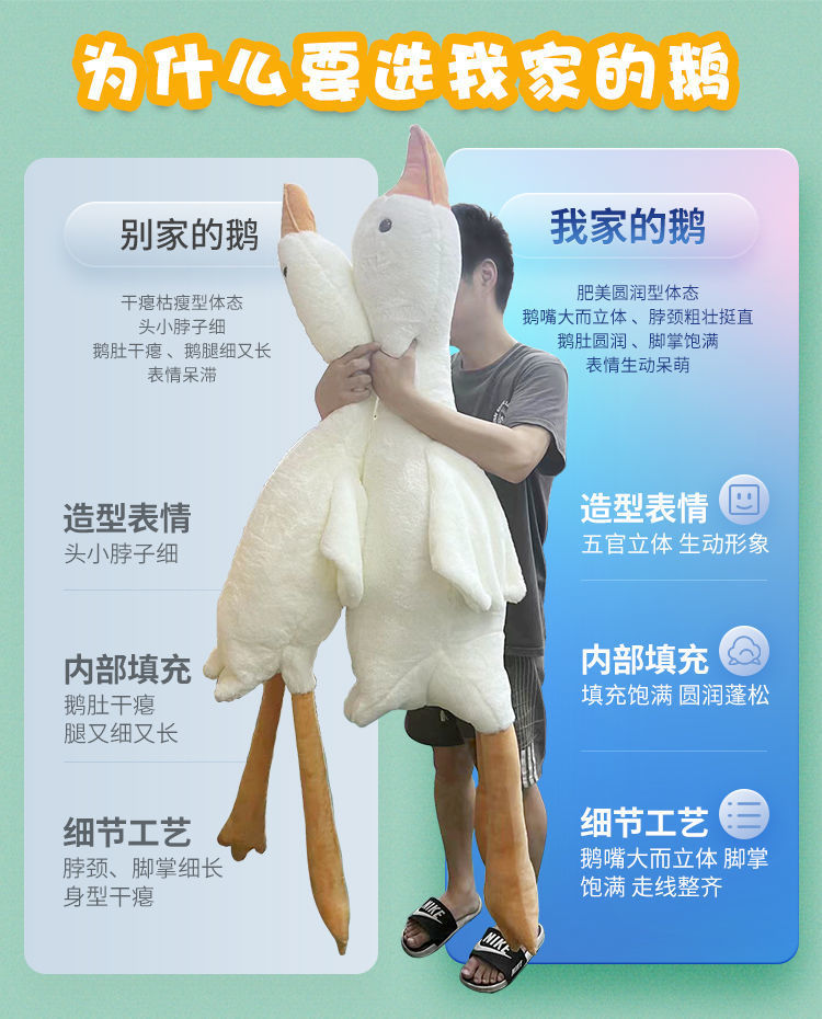 网红大白鹅抱枕毛绒玩具玩偶大鹅娃娃公仔女生睡觉夹腿抱生日礼物