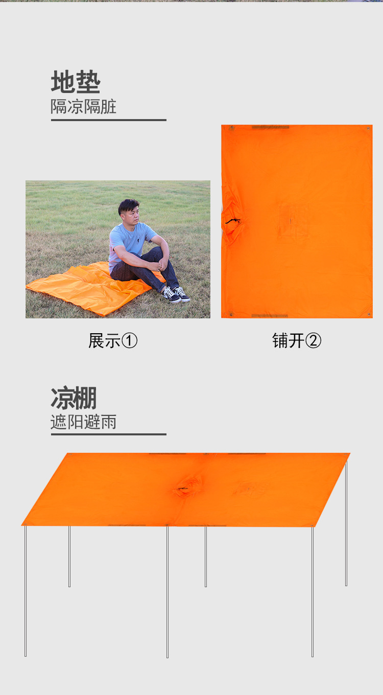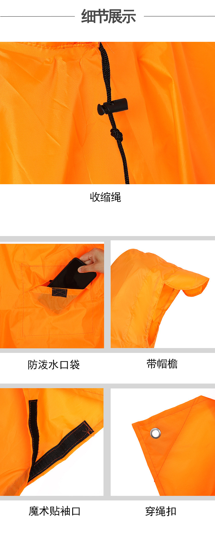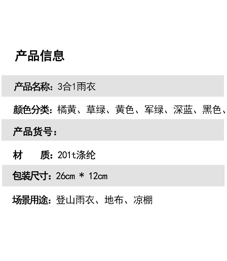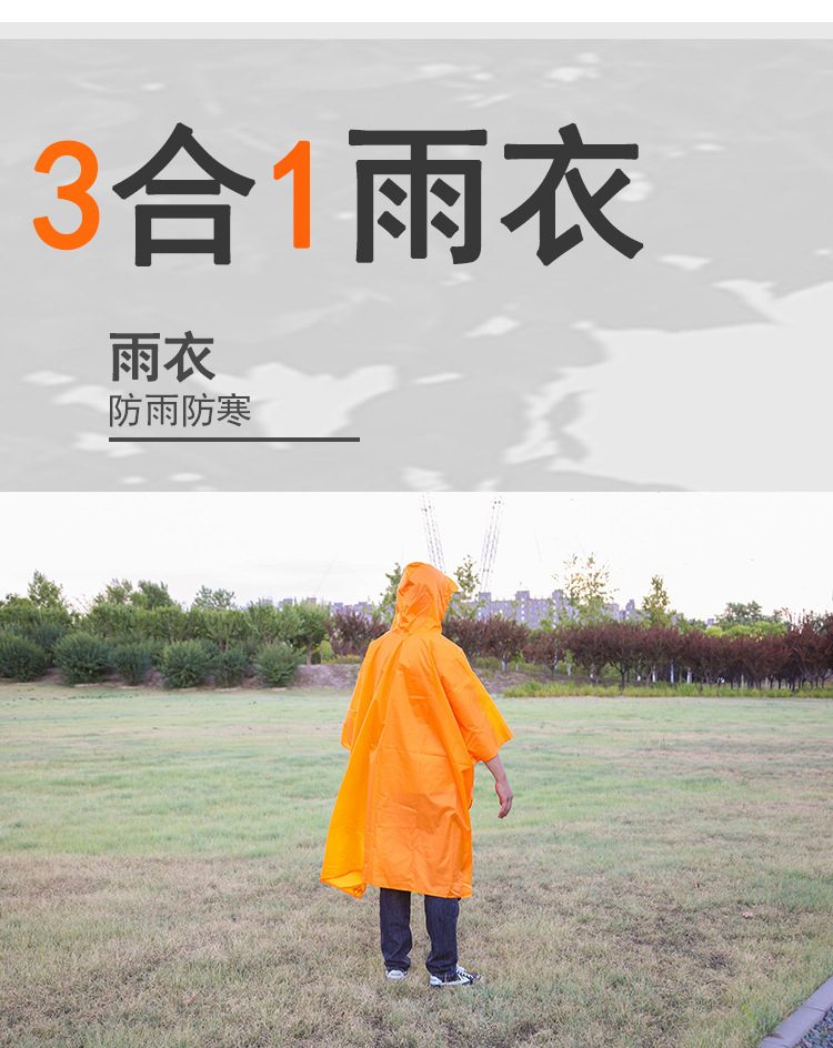 跨境210T防水涤塔夫天幕地席式三合一雨披徒步户外多功能斗篷雨衣