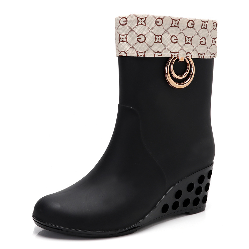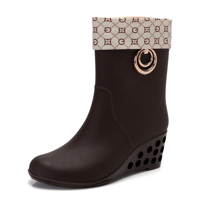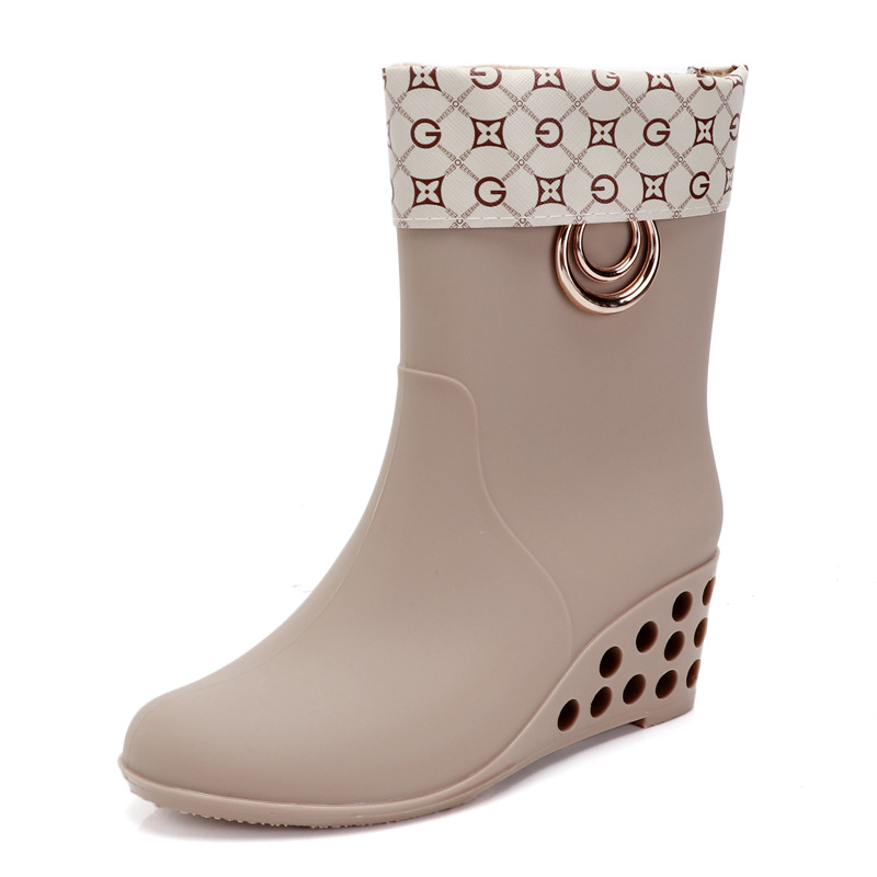 雨鞋女成人中筒水鞋短筒雨靴女式时尚防滑轻便坡跟雨鞋韩版防水靴