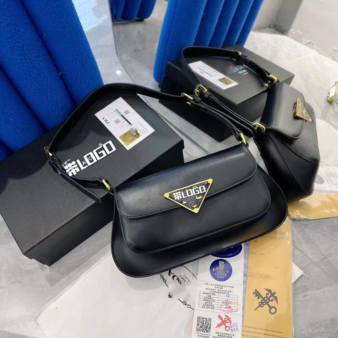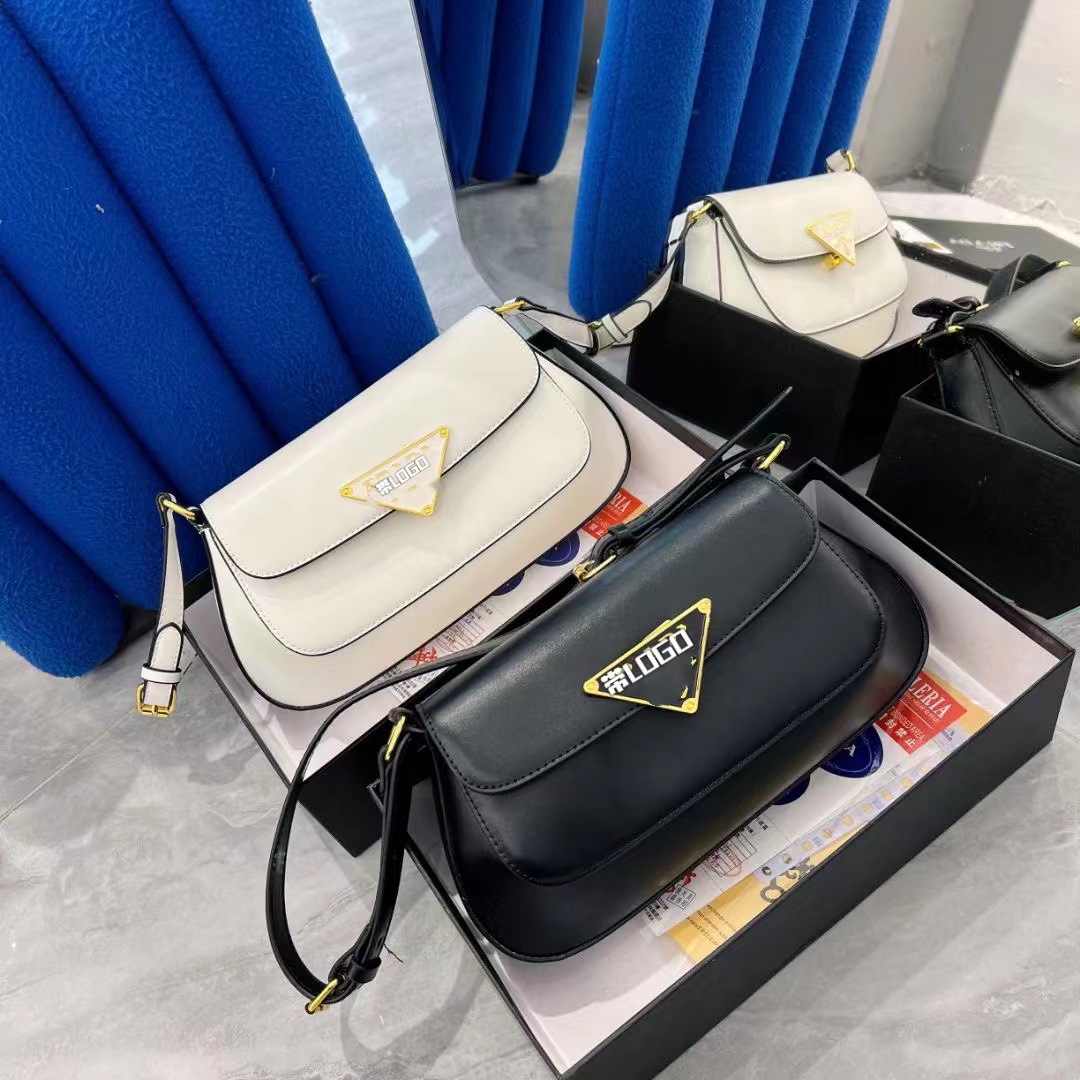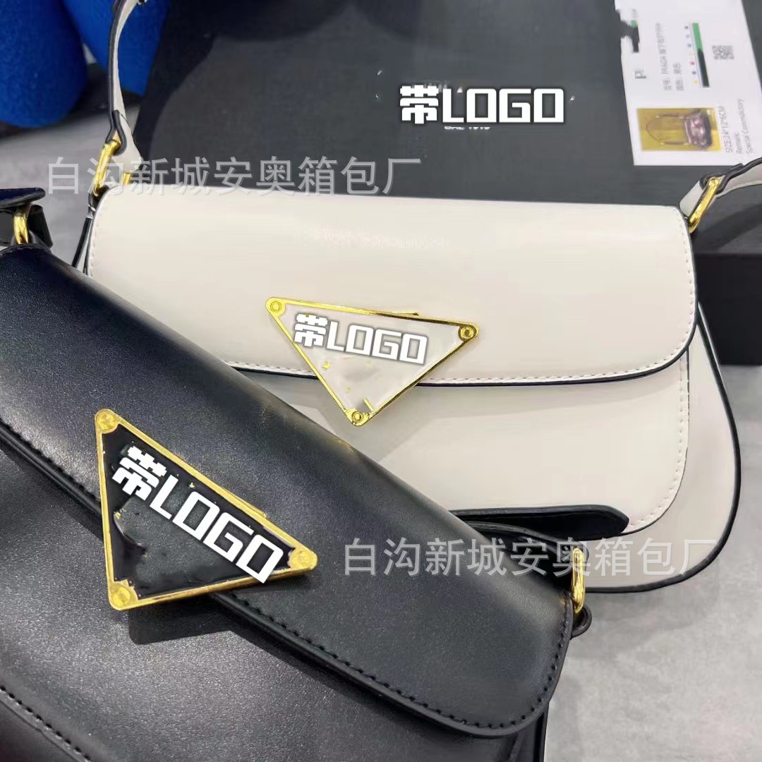 批发跨境女包新款三角徽标复古法棍包饺子包亮面腋下包单肩手拎包