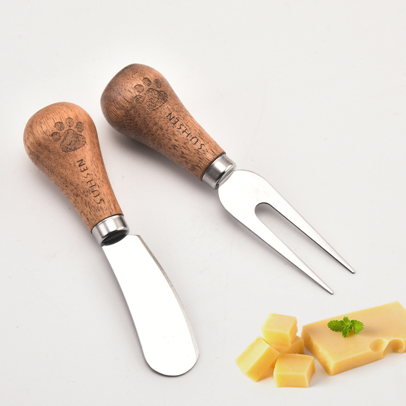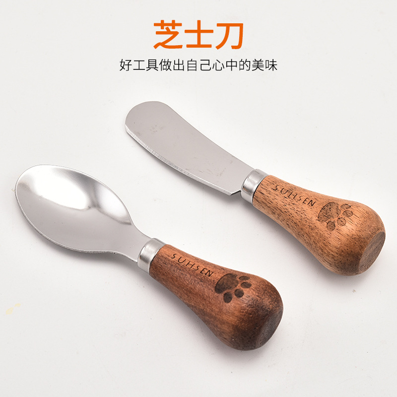 立式黄油刀 不锈钢芝士刀 木柄牛油刀抹面包小刀迷你果酱小刀