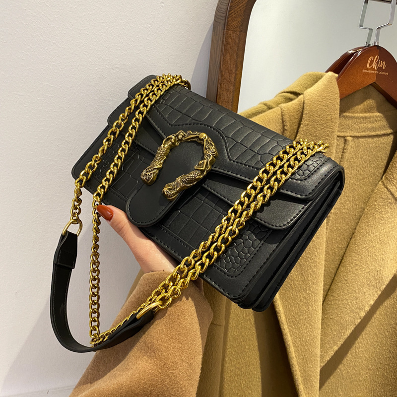 厂家直供秋冬包包女包新款潮链条石头纹质感时尚单肩包斜挎小方包