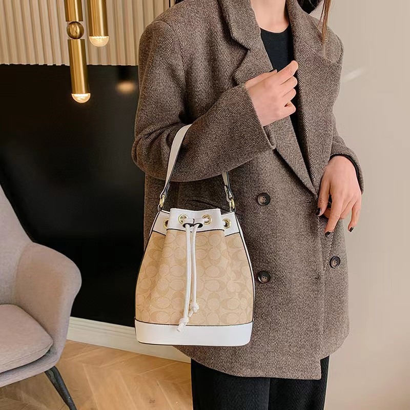 外贸蔻家水桶包单肩斜挎包印花欧美时尚外出大容量水桶包百搭批发