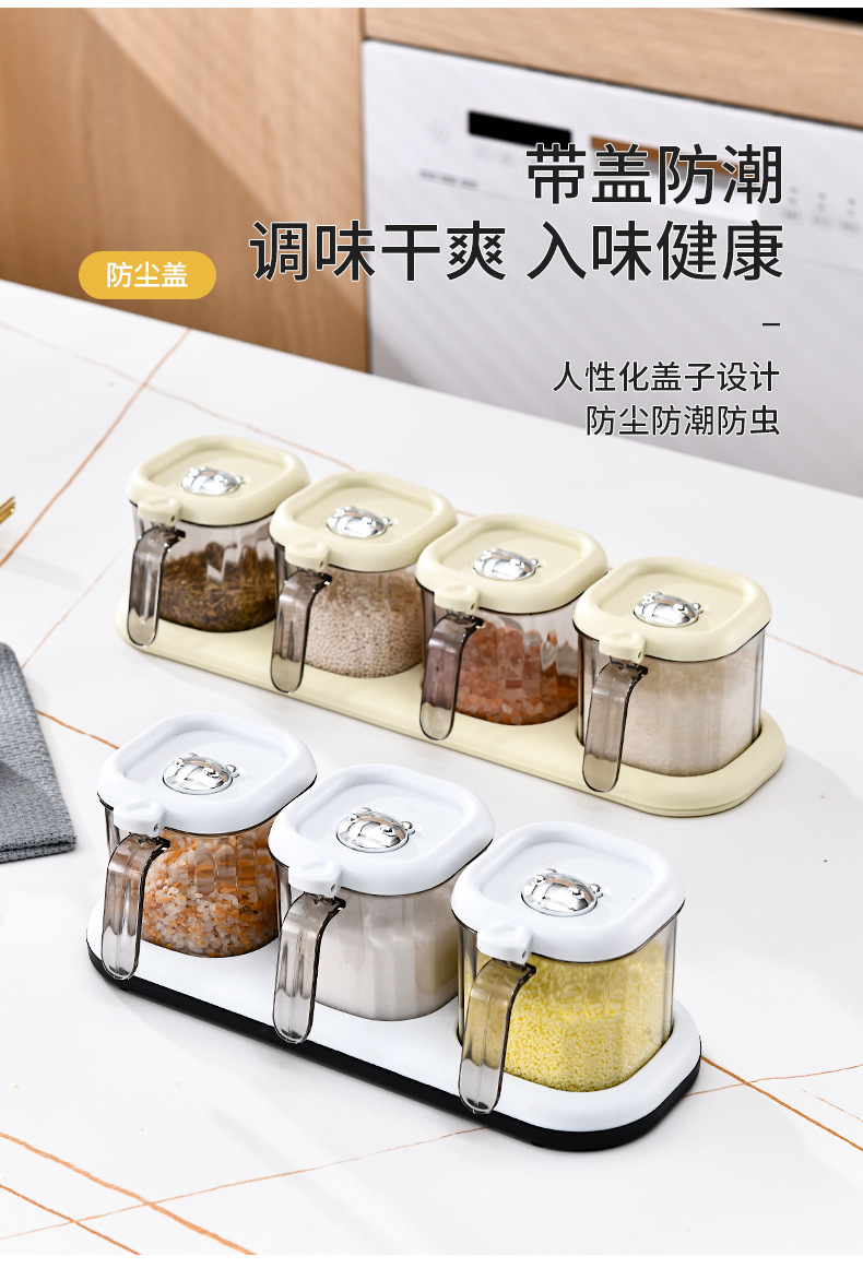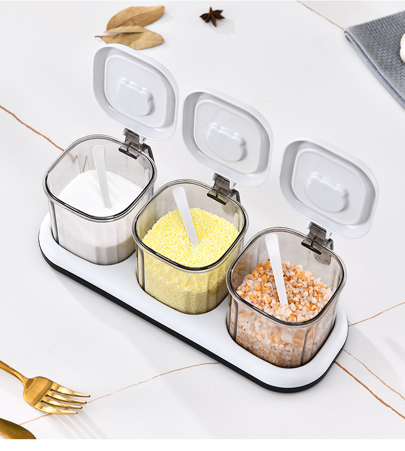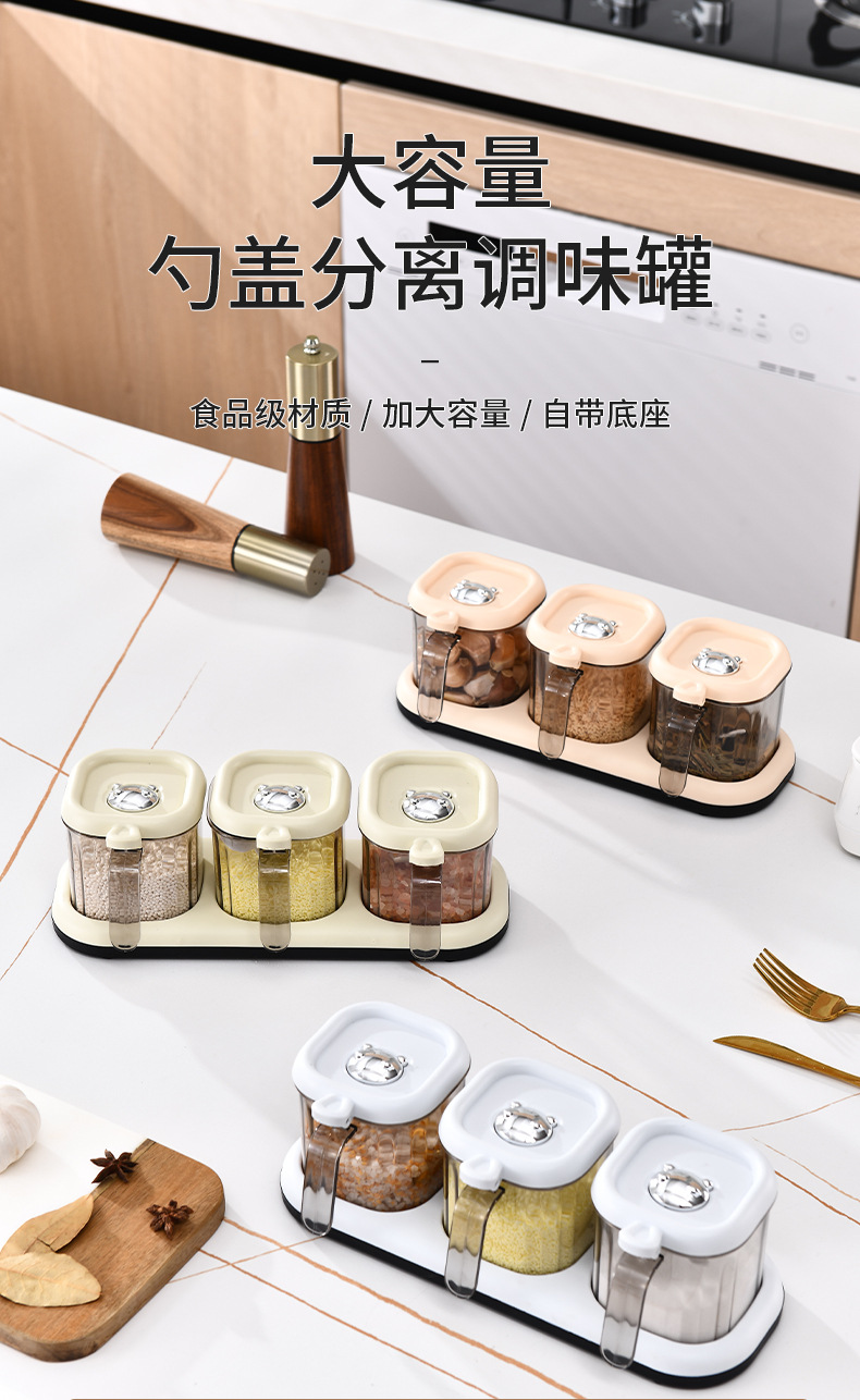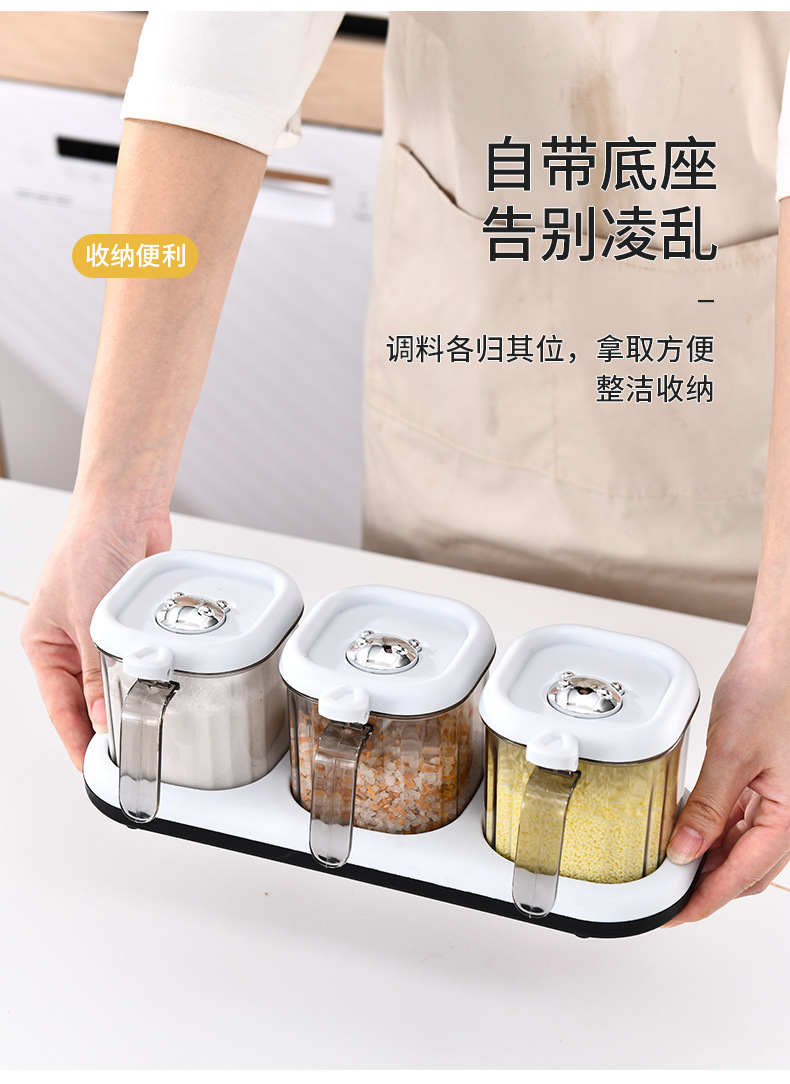新款家用厨房调料罐 佐料盐味精调料瓶组合 密封三合一多格调料盒